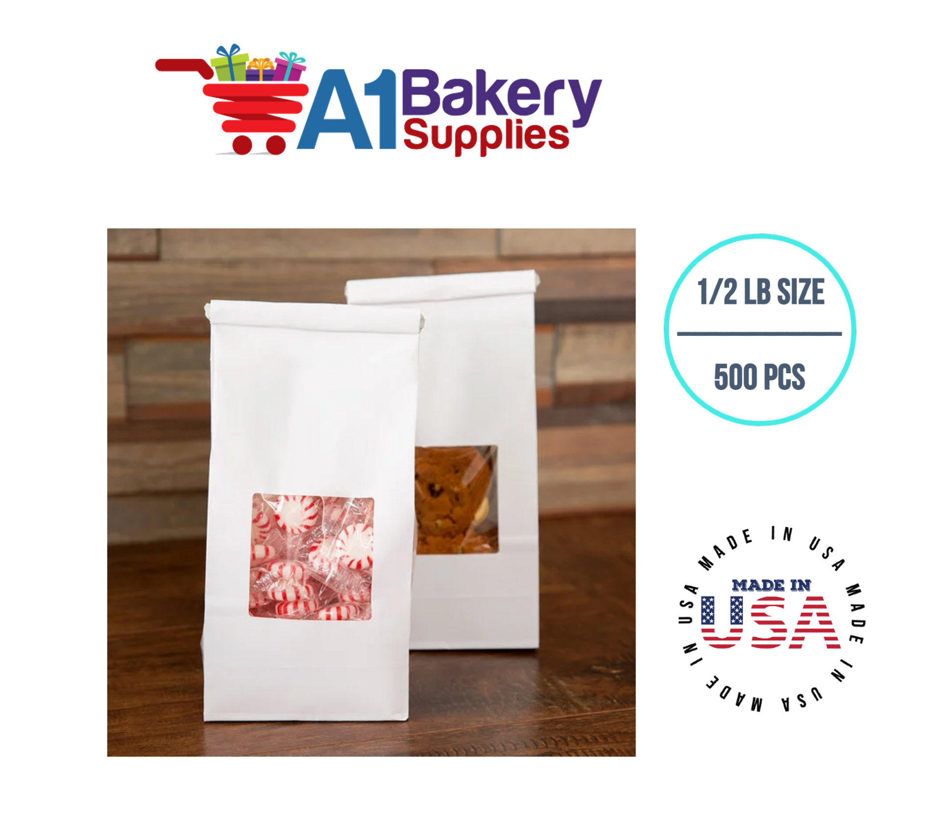 • White color 1/2 LB Bags with Square window
