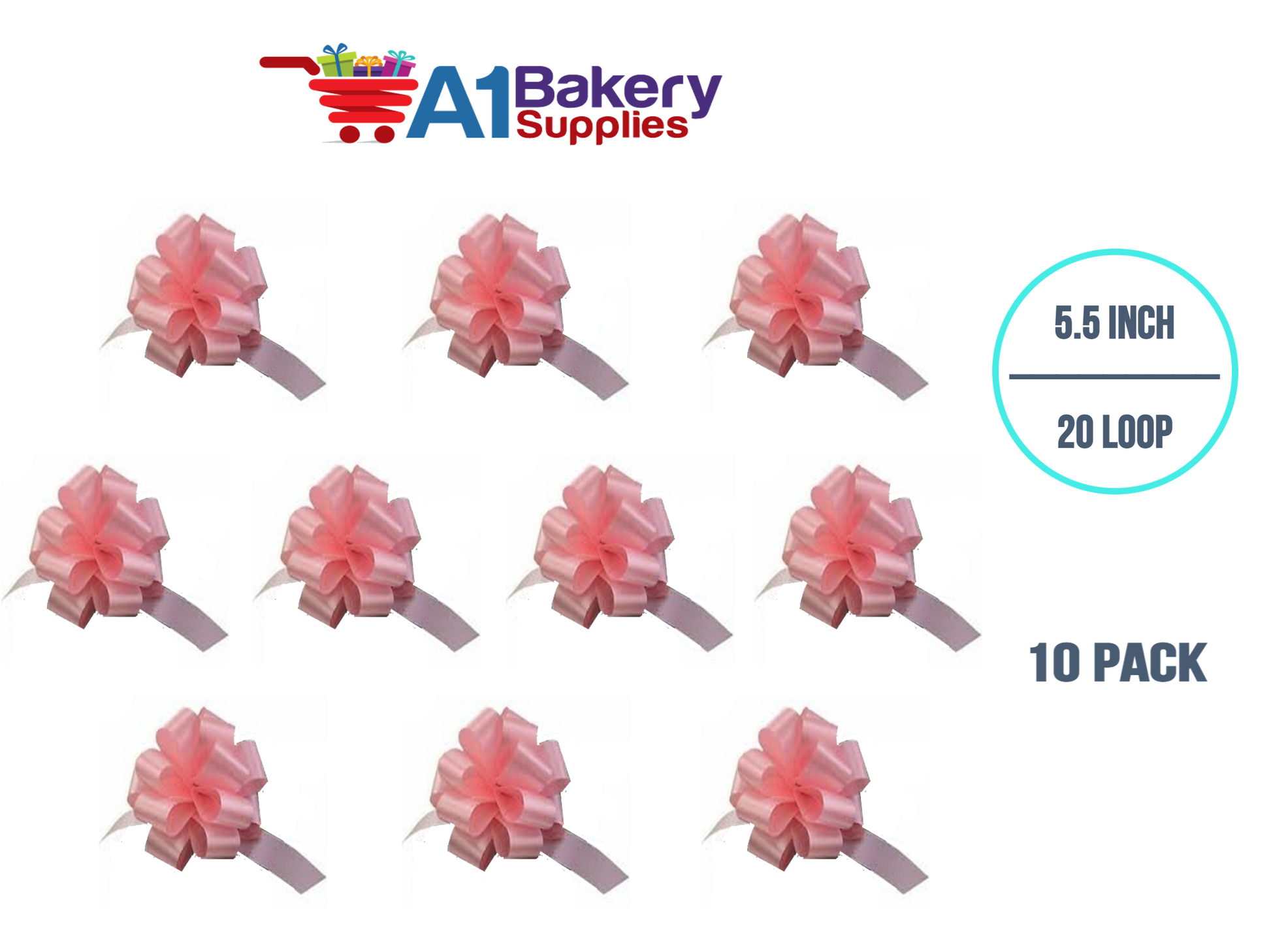 A1BakerySupplies 10 Pieces Pull Bow for Gift Wrapping Gift Bows Pull Bow With Ribbon for Wedding Gift Baskets, 5.5 Inch 20 Loop in Pink Color