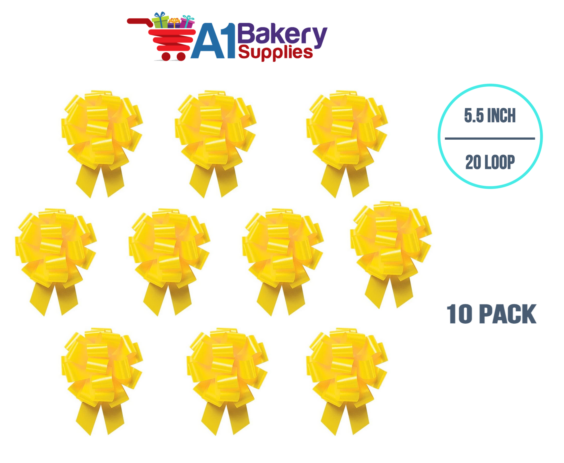 A1BakerySupplies 10 Pieces Pull Bow for Gift Wrapping Gift Bows Pull Bow With Ribbon for Wedding Gift Baskets, 5.5 Inch 20 Loop in Yellow Color