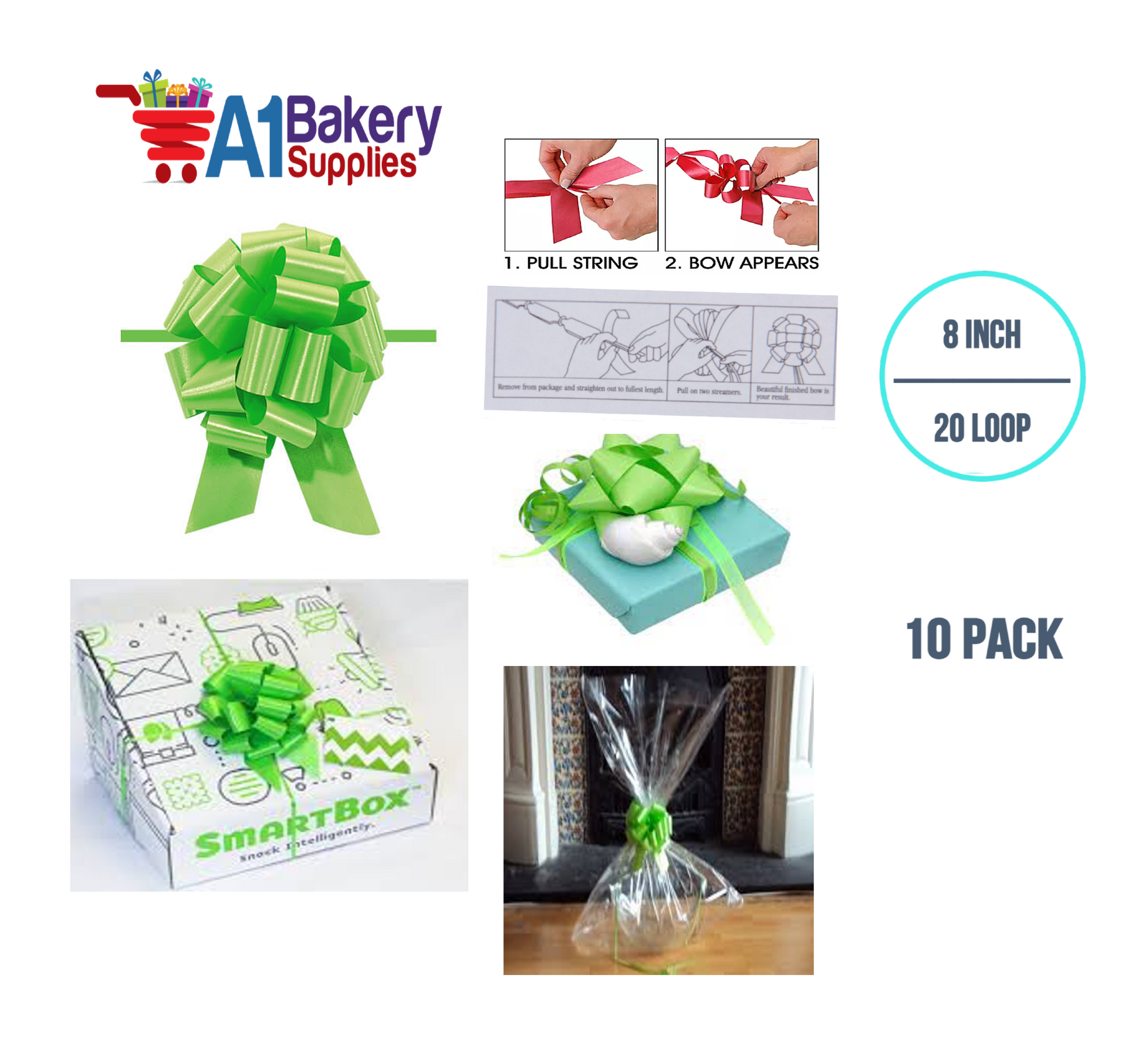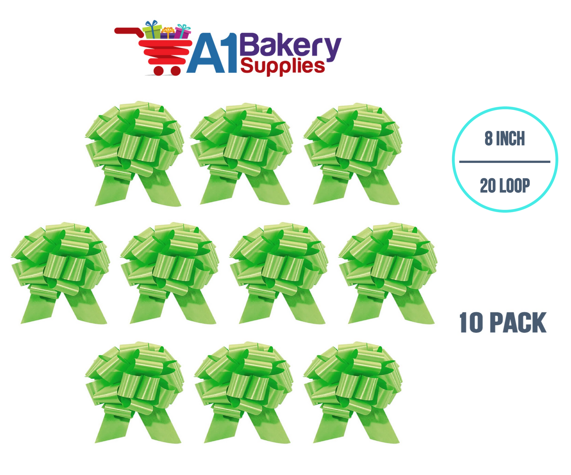 A1BakerySupplies 10 Pieces Pull Bow for Gift Wrapping Gift Bows Pull Bow With Ribbon for Wedding Gift Baskets, 8 Inch 20 Loop Citrus Green Flora Satin Color