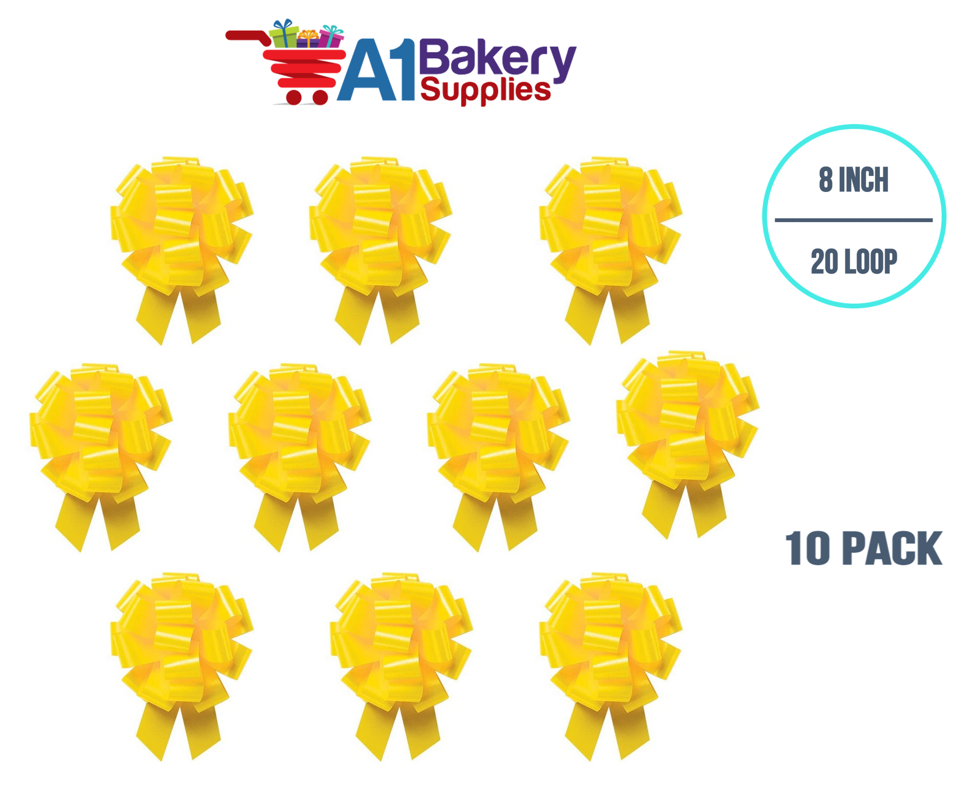 A1BakerySupplies 10 Pieces Pull Bow for Gift Wrapping Gift Bows Pull Bow With Ribbon for Wedding Gift Baskets, 8 Inch 20 Loop Yellow Daffodil Flora Satin Color