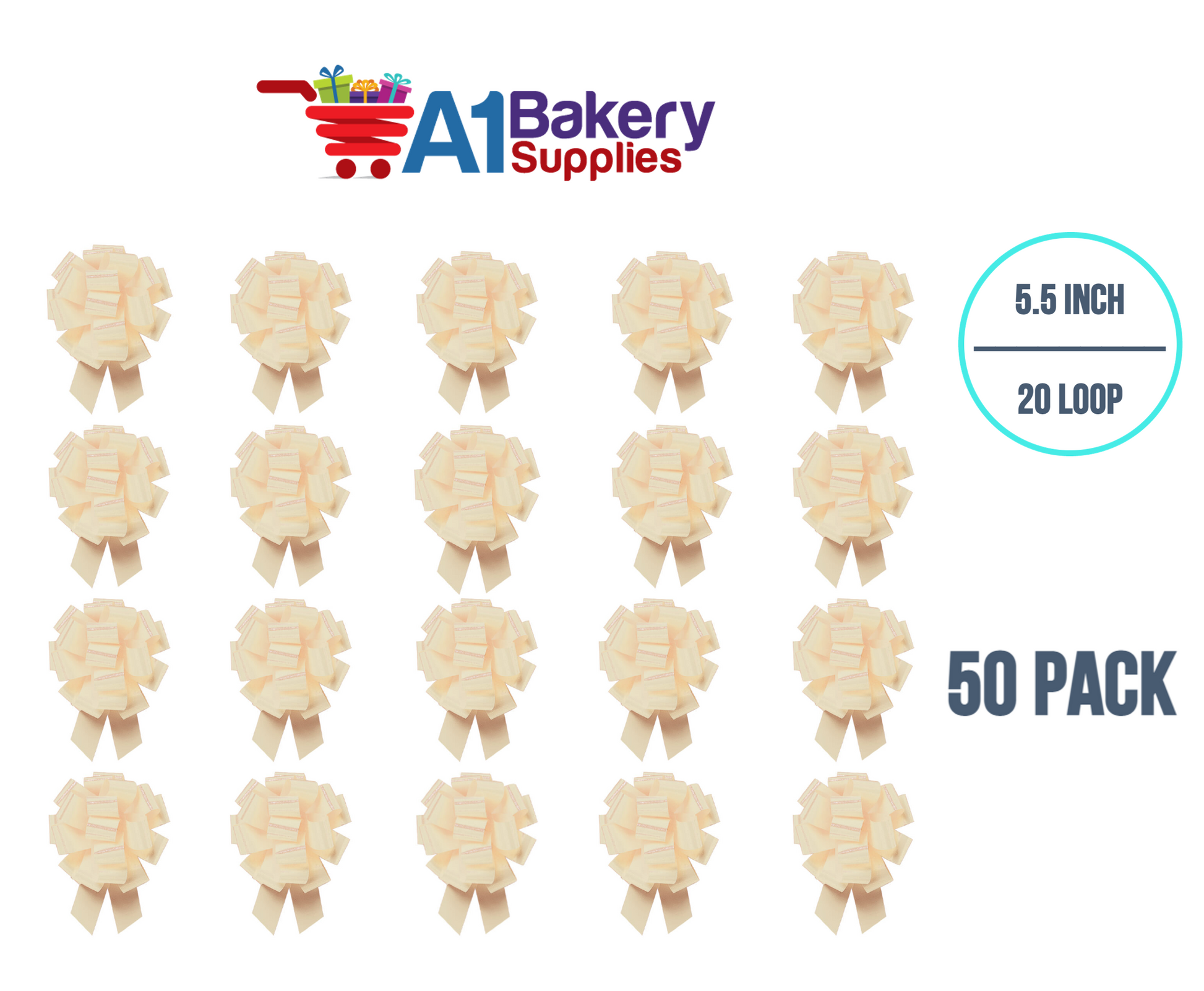 A1BakerySupplies 50 Pieces Pull Bow for Gift Wrapping Gift Bows Pull Bow With Ribbon for Wedding Gift Baskets, 5.5 Inch 20 Loop in Egg Shell Color