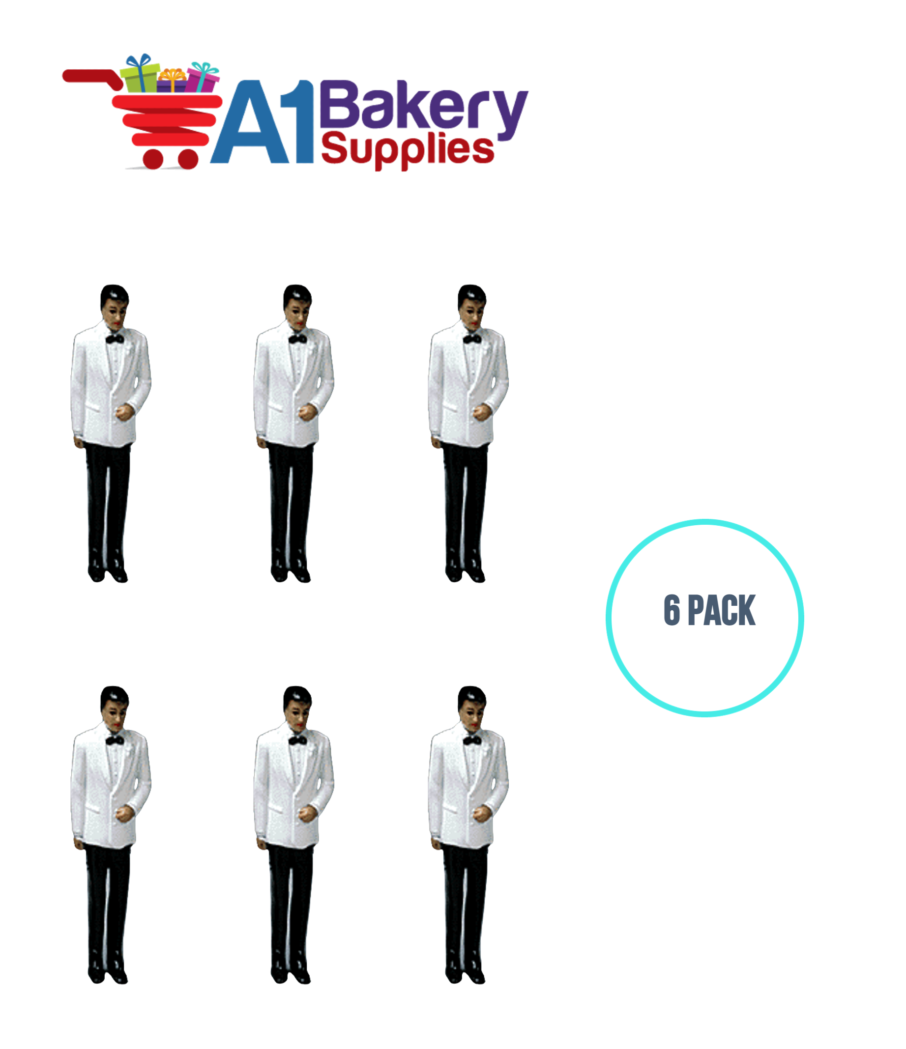 A1BakerySupplies Groom - White Coat - A.A. 6 pack Wedding Accessories for Birthday Cake Decorations and Marriages