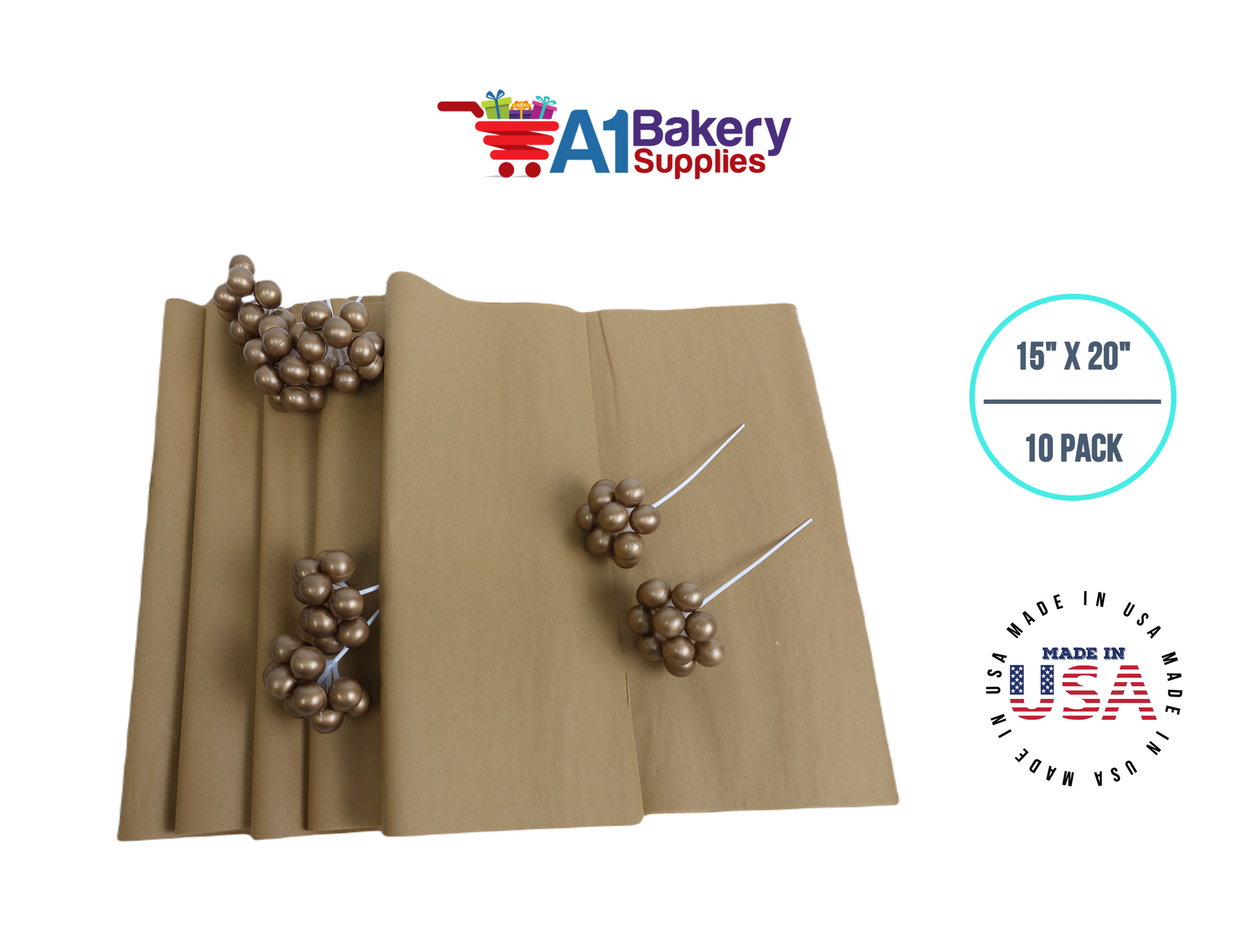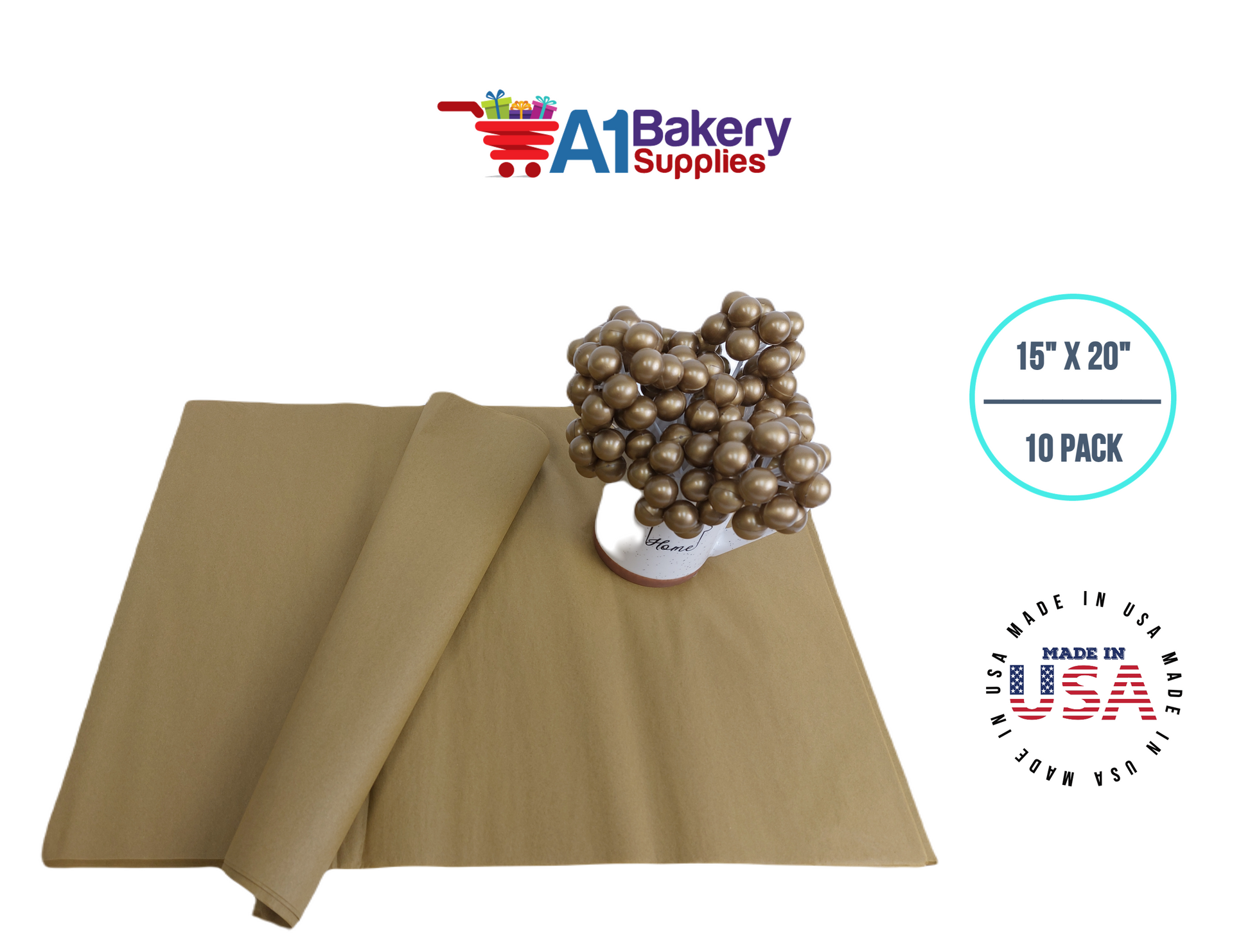 Antique Gold Tissue Paper Squares, Bulk 10 Sheets, Premium Gift Wrap and Art Supplies for Birthdays, Holidays, or Presents by A1BakerySupplies, Large 15 Inch x 20 Inch