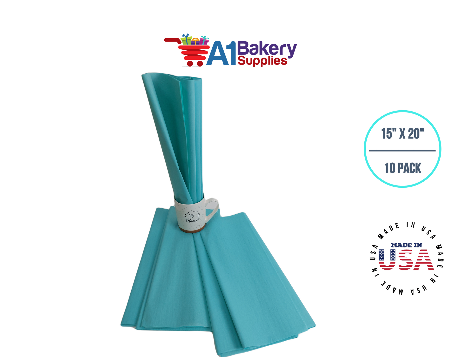 Aqua Blue Tissue Paper Squares, Bulk 10 Sheets, Premium Gift Wrap and Art Supplies for Birthdays, Holidays, or Presents by A1BakerySupplies, Small 15 Inch x 20 Inch