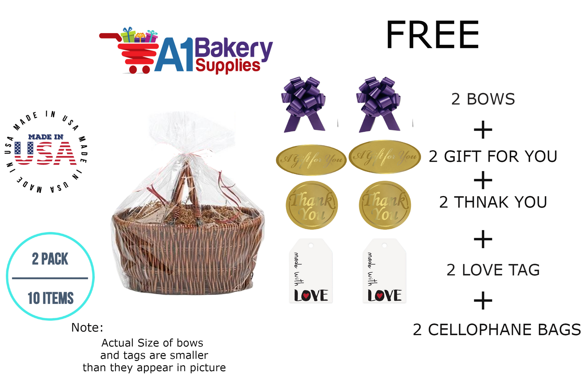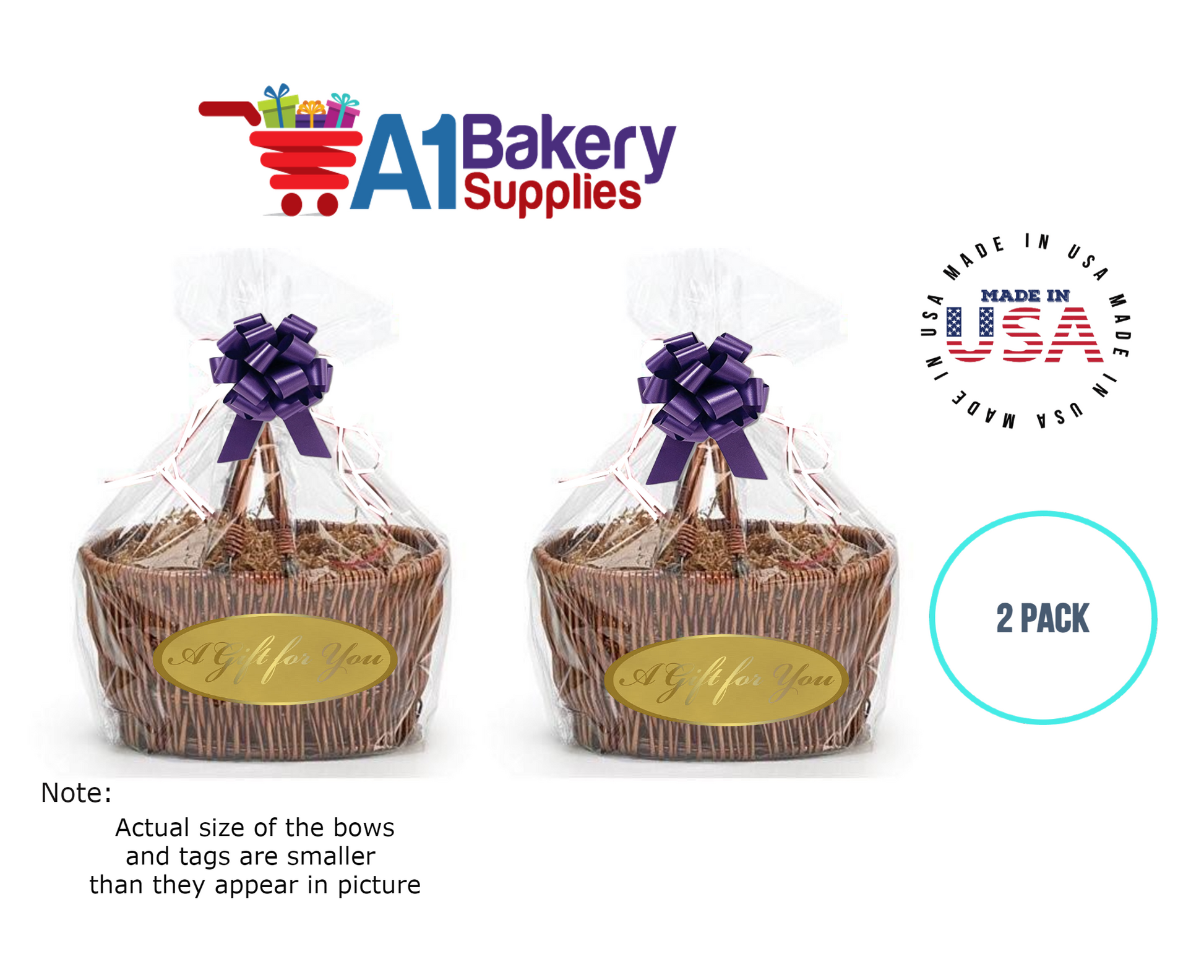 - In this order you will receive 2 purple bows , 2 thank you , 2 gift for you , 2 made with love tag and no gift basket is provided , it is only for the picture purpose and only cellophane bags are selling .