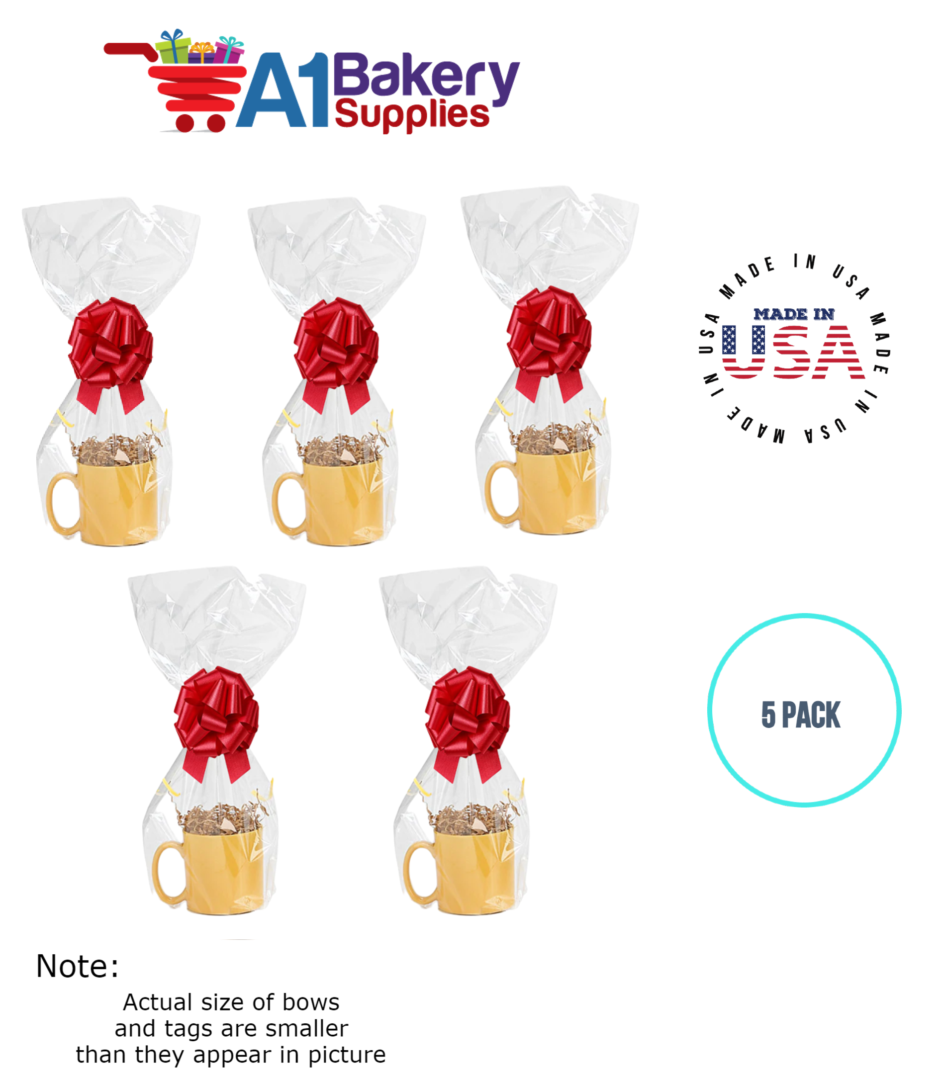 - In this order you will receive 5 Red bows , 5 thank you , 5 gift for you , 5 made with love tag and no gift basket is provided , it is only for the picture purpose and only cellophane bags are selling .