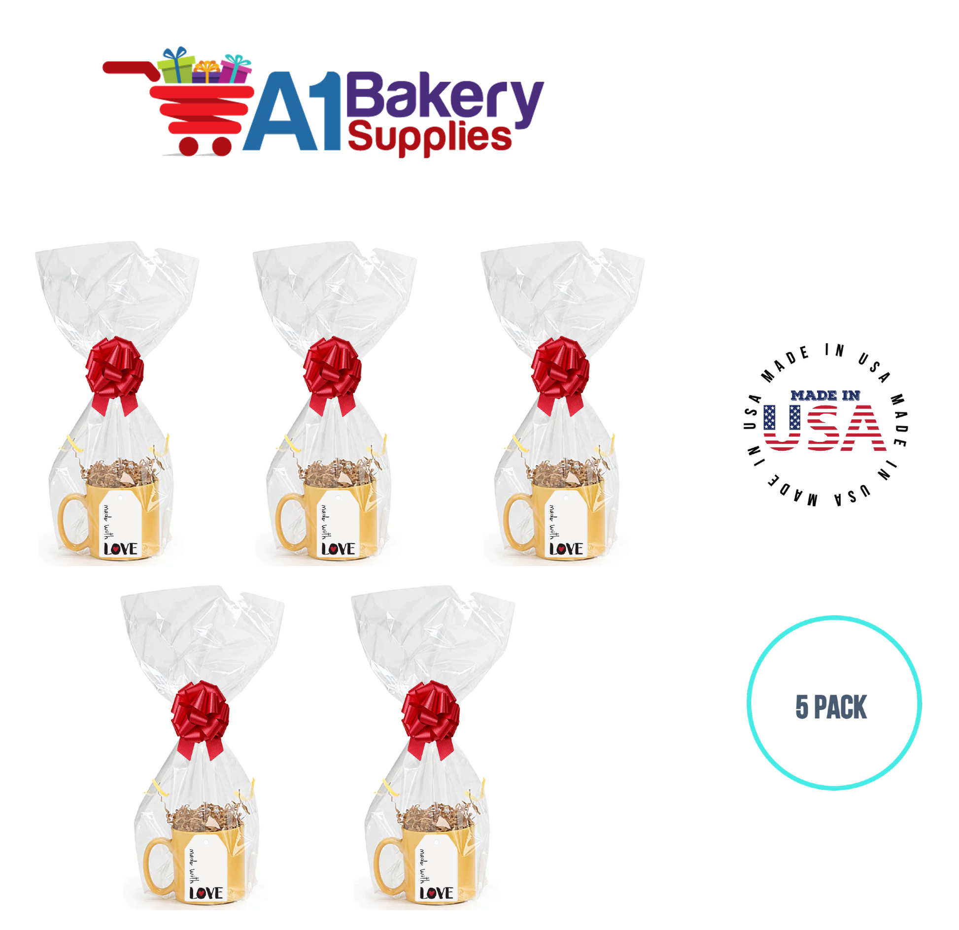 BOPP Sealable Cellophane Bags and Clear Gift Basket Wrap Packaging, 9 in x 20 in, Clear Cello Wrapping for Baby Shower, Wedding Party, or Event Giveaways, 5 Pack