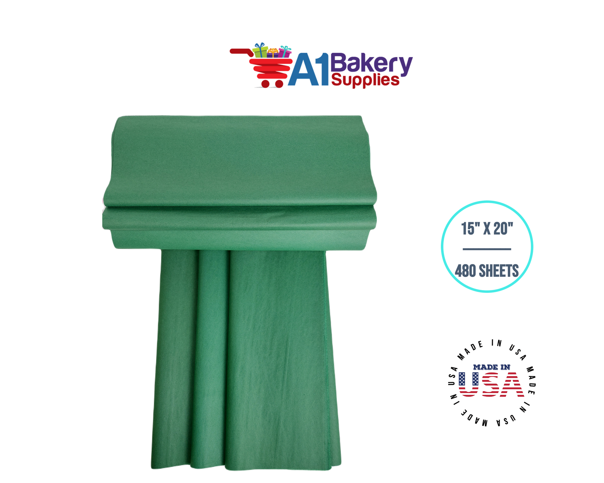 Brand New Green Bulk Tissue Paper 15 Inch x 20 Inch - 480 Sheets Gift Wrap Tissue Paper size 15 In X 20 In. Each Pack contains 480 sheets. These papers are made of Premium Quality and good for Gift Package, Gift Wrap, Jewel Wrap, and Craft Work