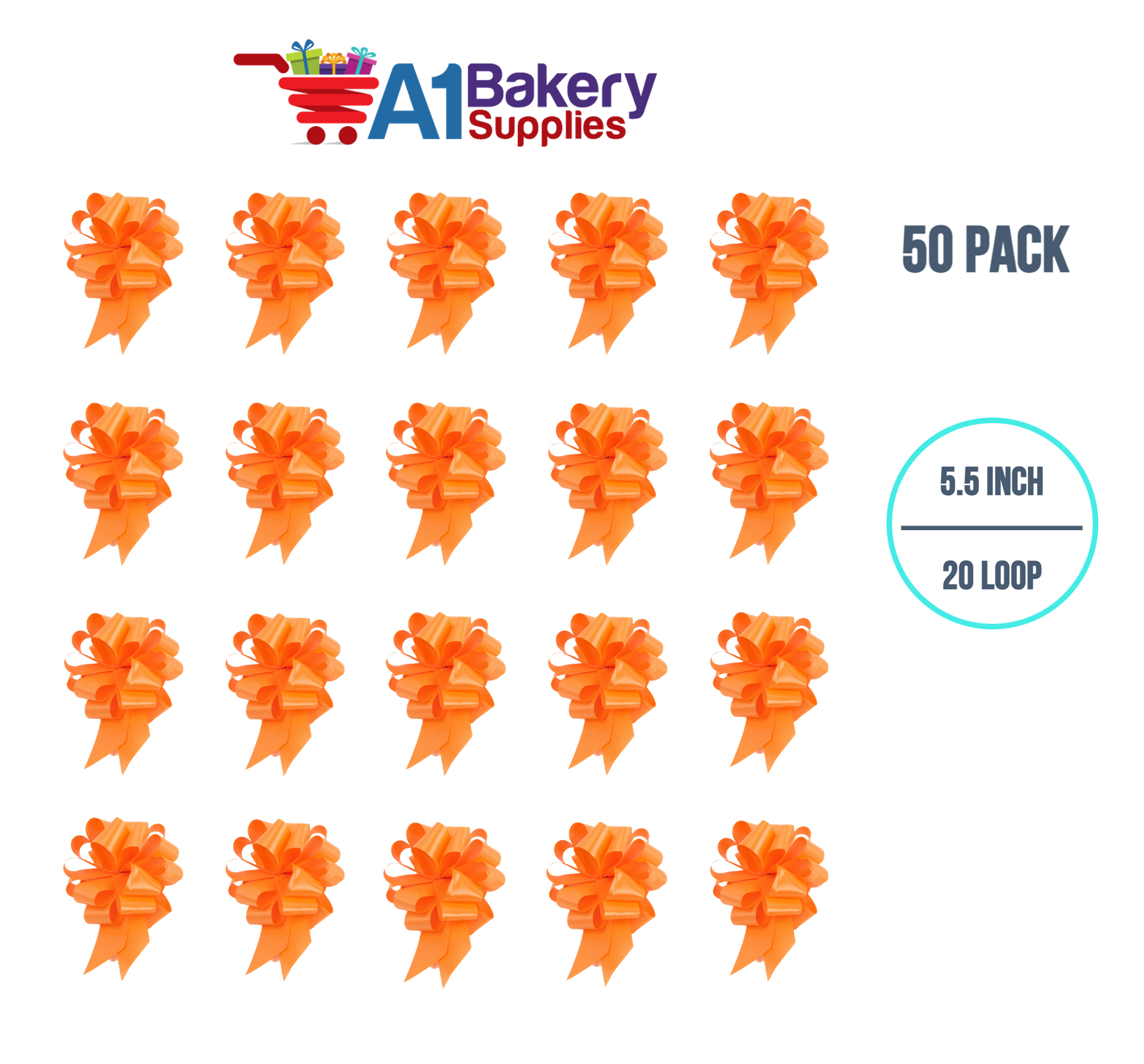 A1BakerySupplies 50 Pieces Pull Bow for Gift Wrapping Gift Bows Pull Bow With Ribbon for Wedding Gift Baskets, 5.5 Inch 20 Loop in Orange Color