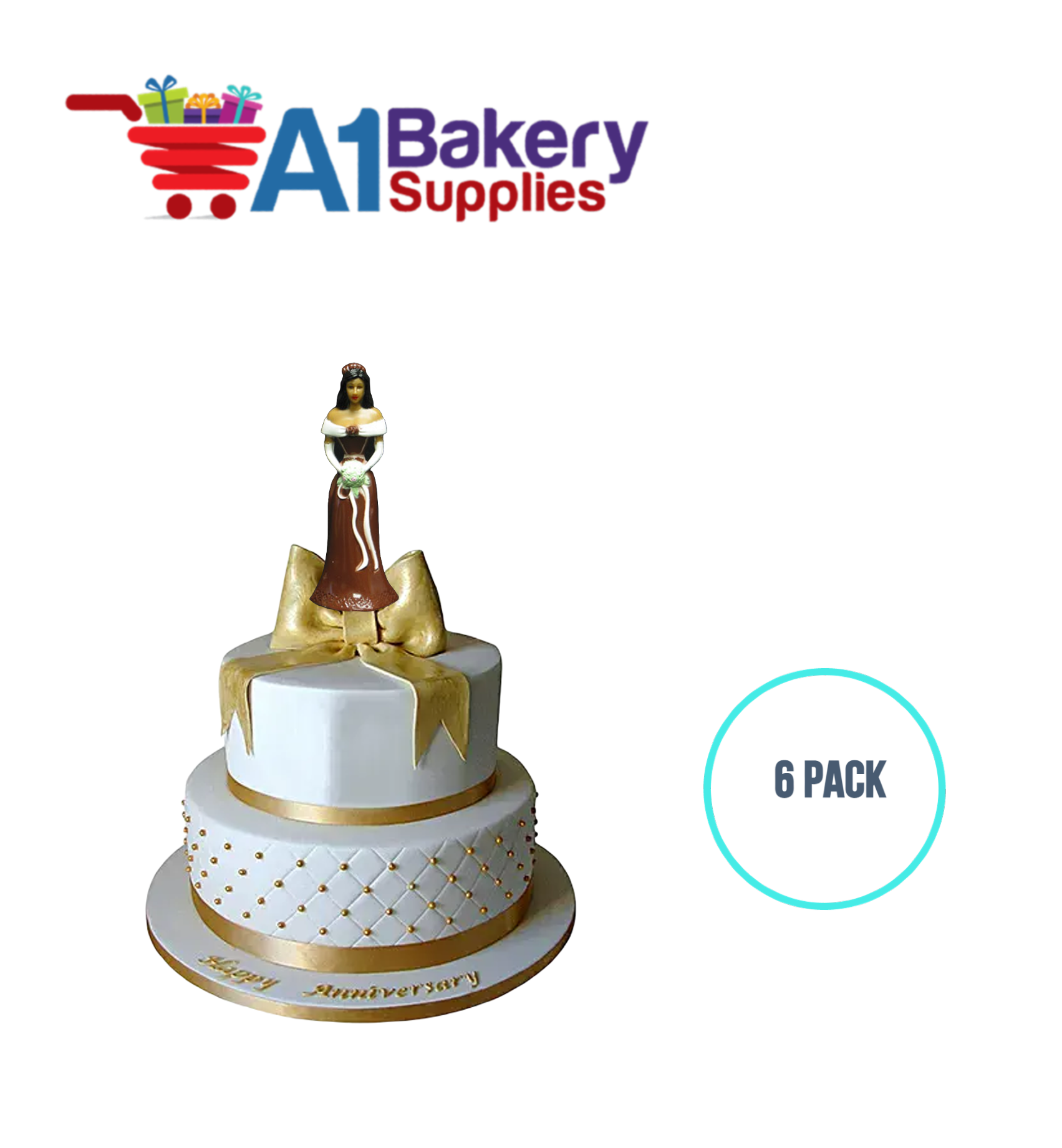 A1BakerySupplies Bridesmaid - Brown - A.A. 6 pack Wedding Accessories for Birthday Cake Decorations and Marriages