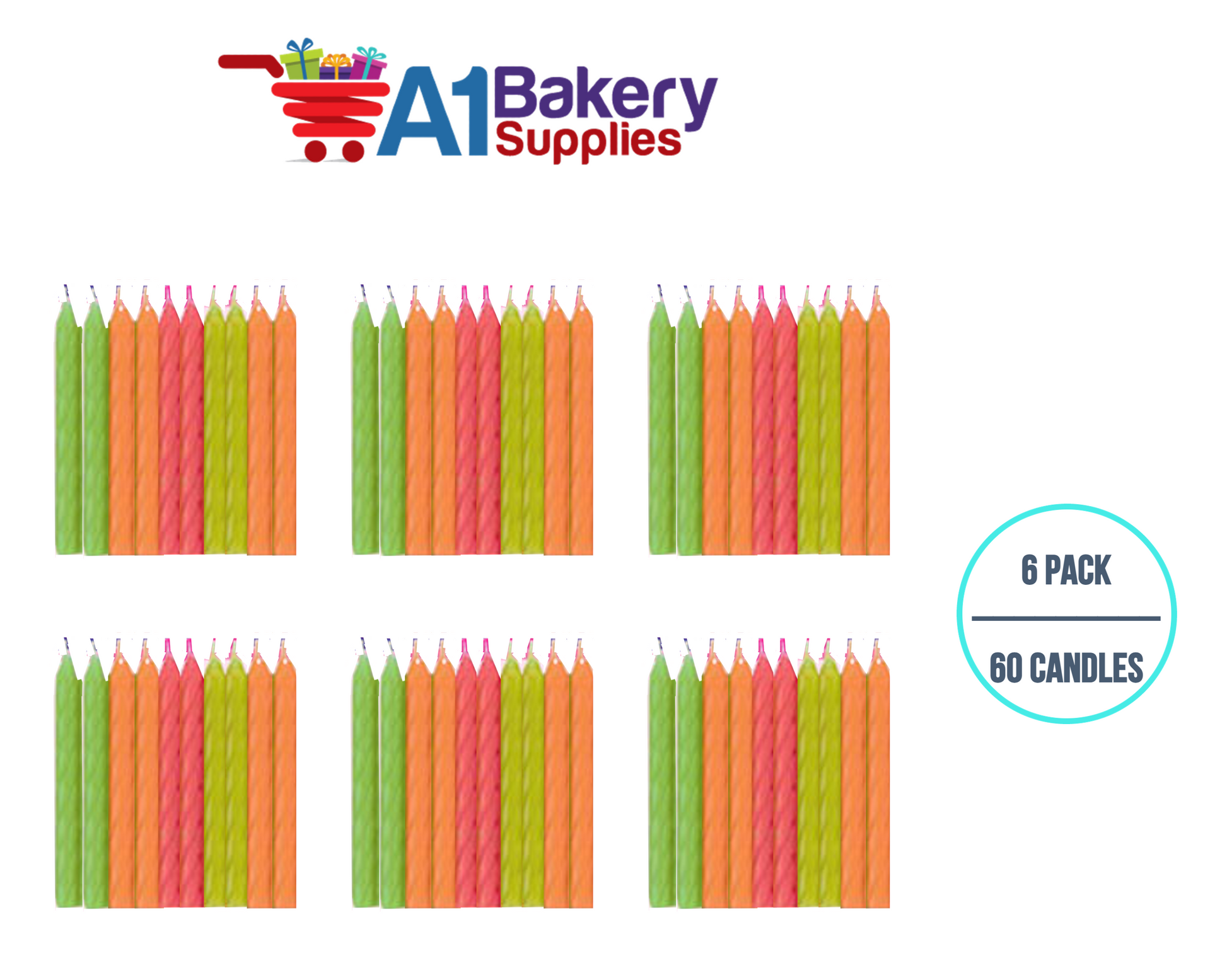 A1BakerySupplies Magic Relight Candles- Neon Asst 6 pack for Birthday Cake Decorations and Anniversary