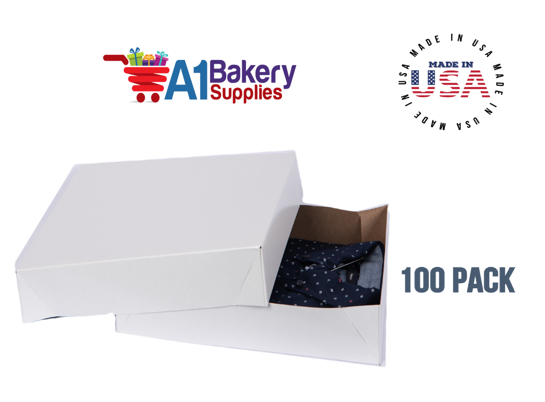 White Apparel Box for Men Shirts Gift Wrap Packaging Boxes, 15 x 9 1/2 x 2" - 100 Pack, Large