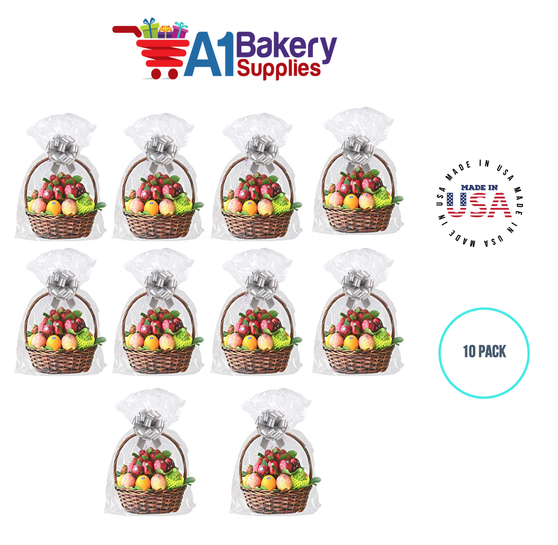 BOPP Sealable Cellophane Bags and Clear Gift Basket Wrap Packaging, 20 in x 30 in, Clear Cello Wrapping for Baby Shower, Wedding Party, or Event Giveaways, 10 Pack