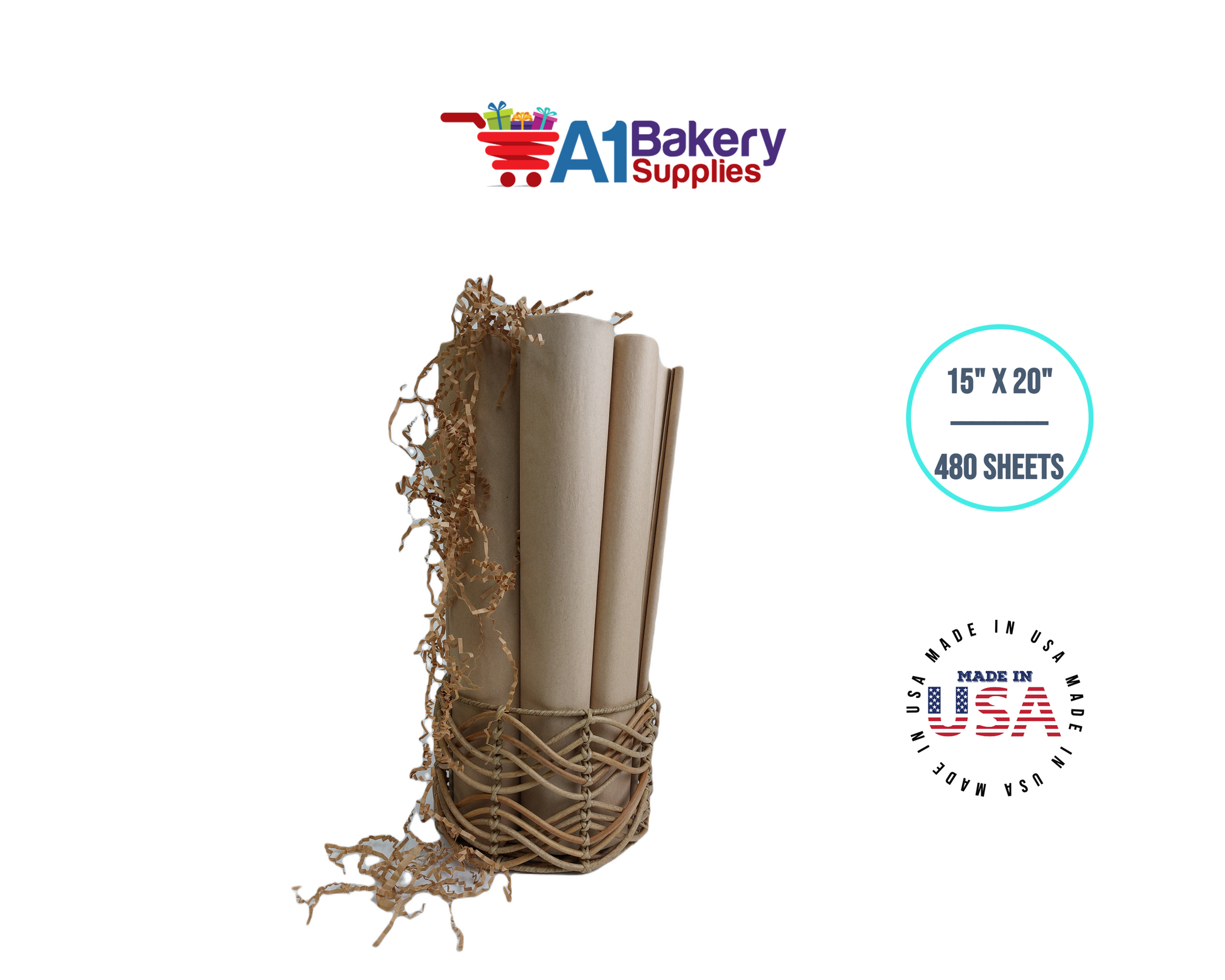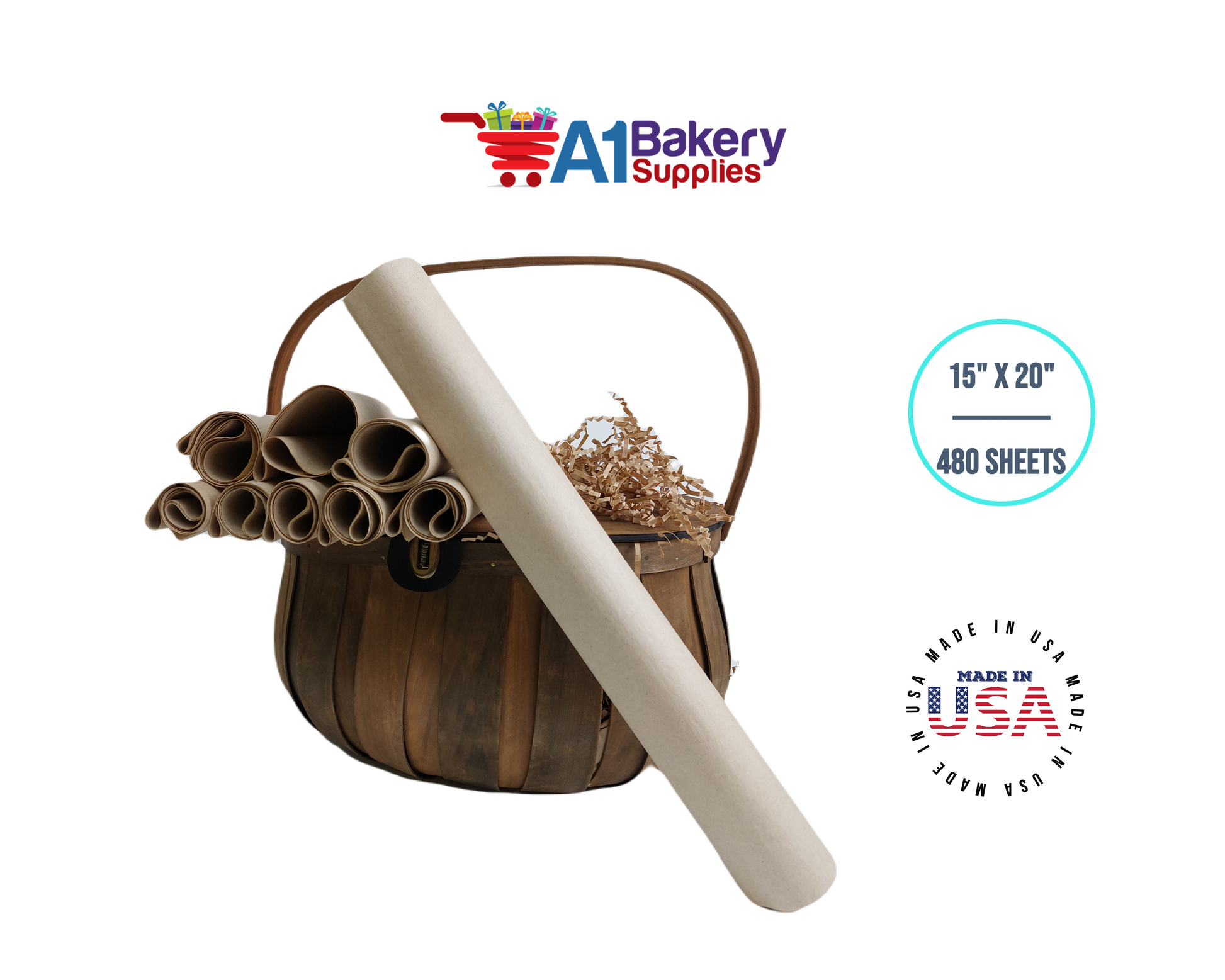 Desert Tan Tissue Paper Squares, Bulk 480 Sheets, Premium Gift Wrap and Art Supplies for Birthdays, Holidays, or Presents by A1BakerySupplies, Large 15 Inch x 20 Inch