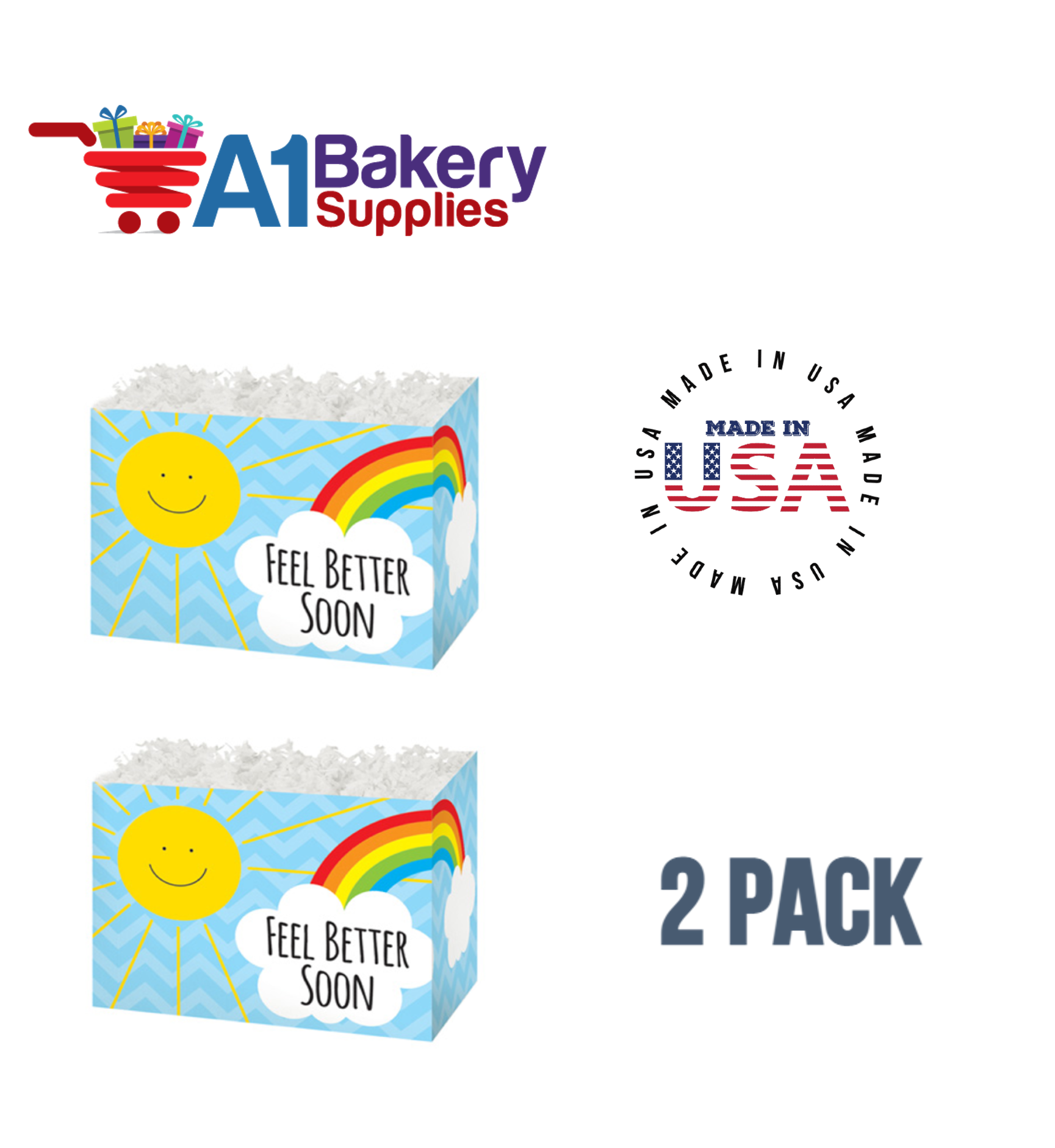 - Each Box comes with totally 2 Pack Small Boxes . Each Feel Better Sunshine Basket Box Measures 6.75 (Length) x 4 (Width) x 5 (Height)
