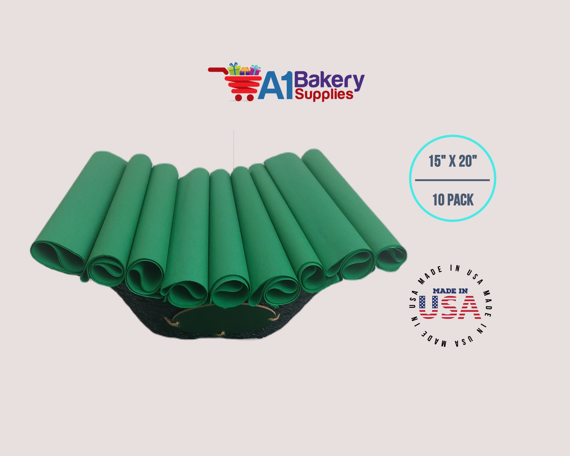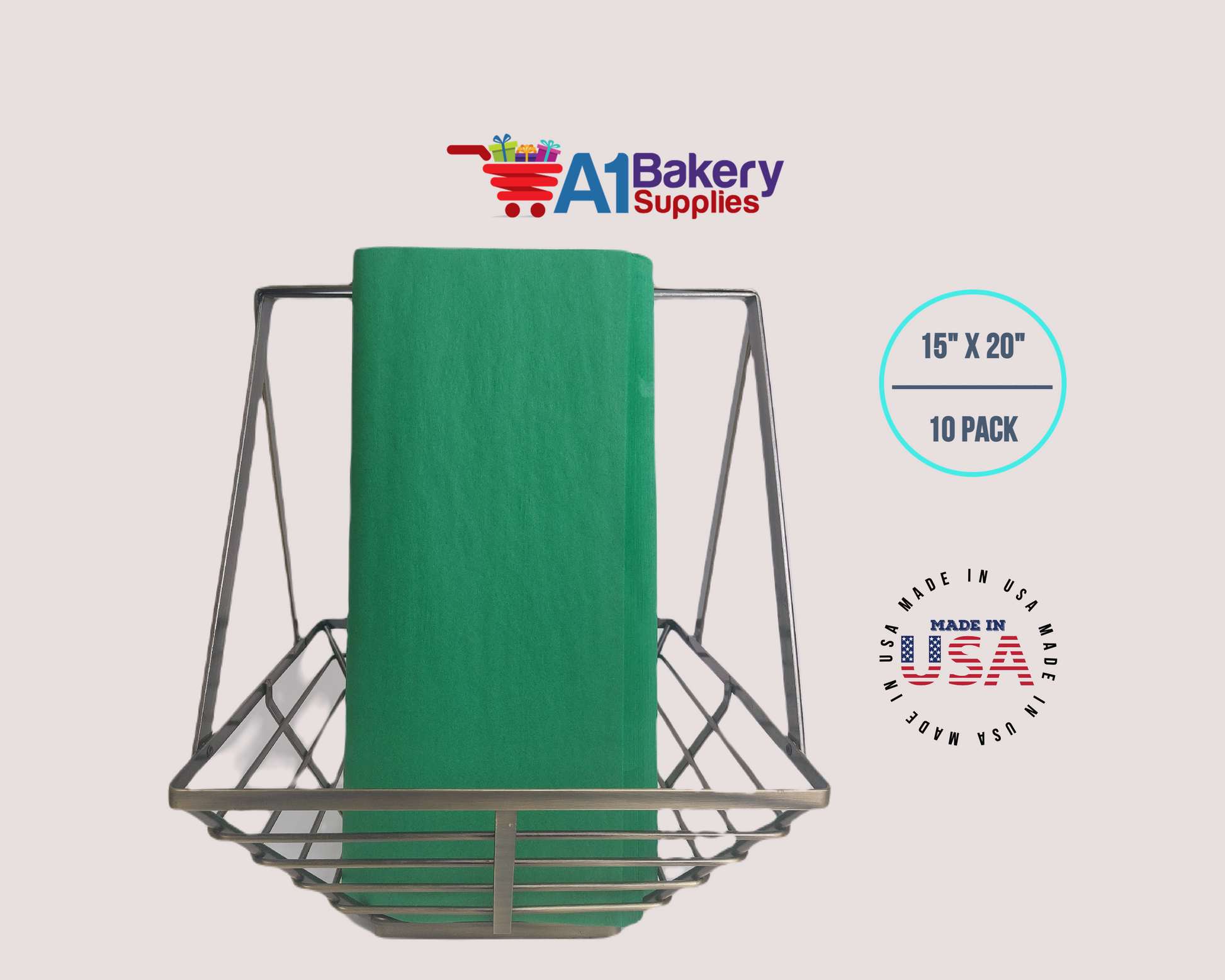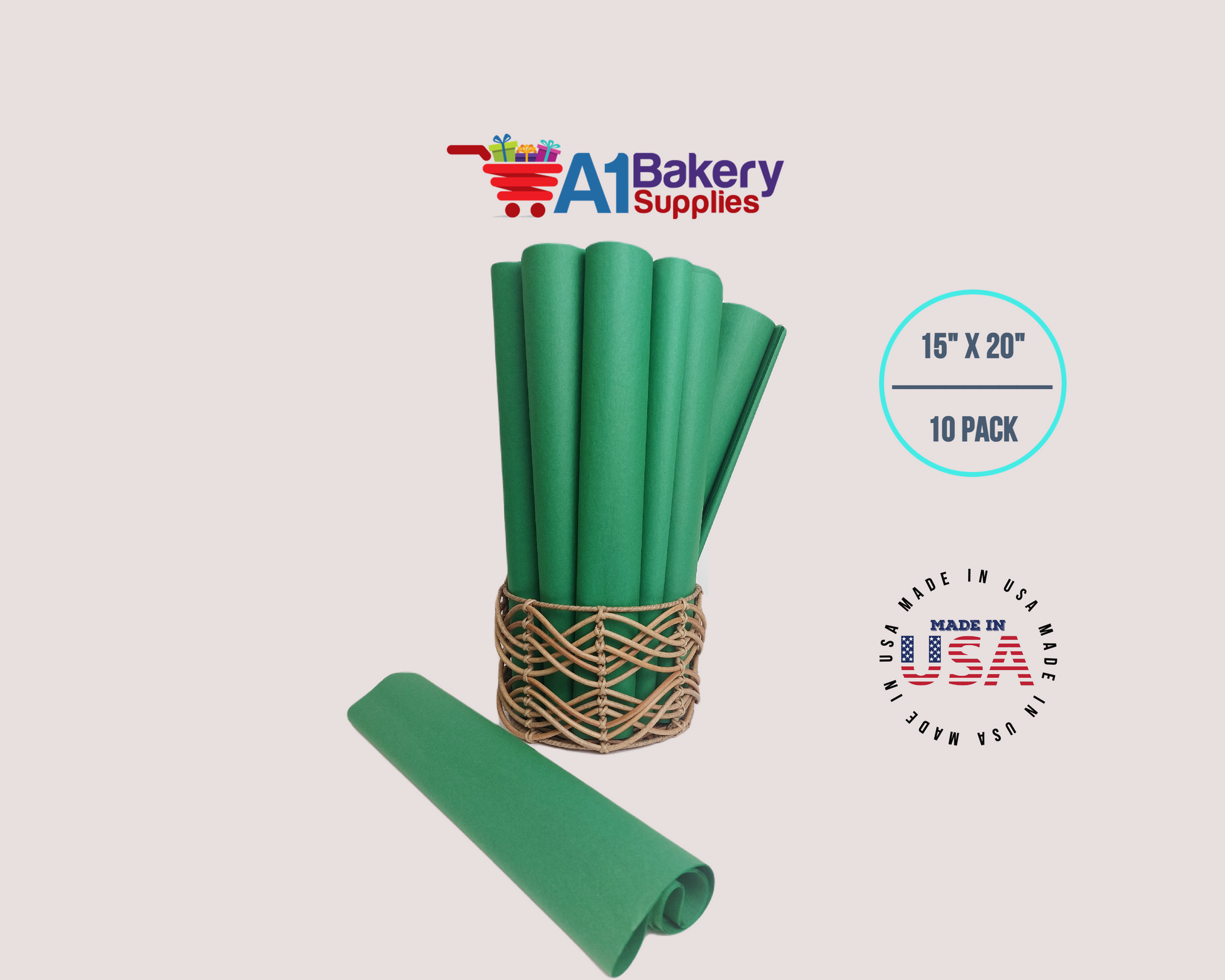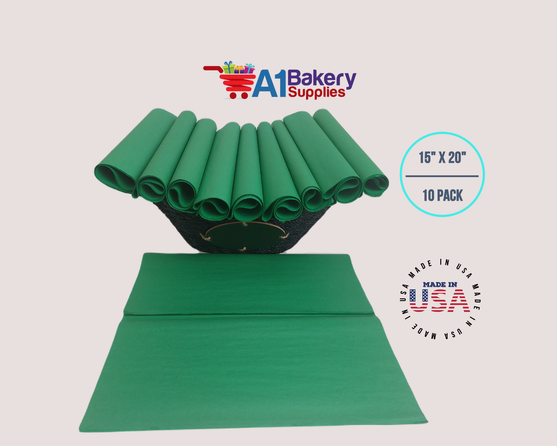 Festive Gren Tissue Paper Squares, Bulk 10 Sheets, Premium Gift Wrap and Art Supplies for Birthdays, Holidays, or Presents by A1BakerySupplies, Large 15 Inch x 20 Inch