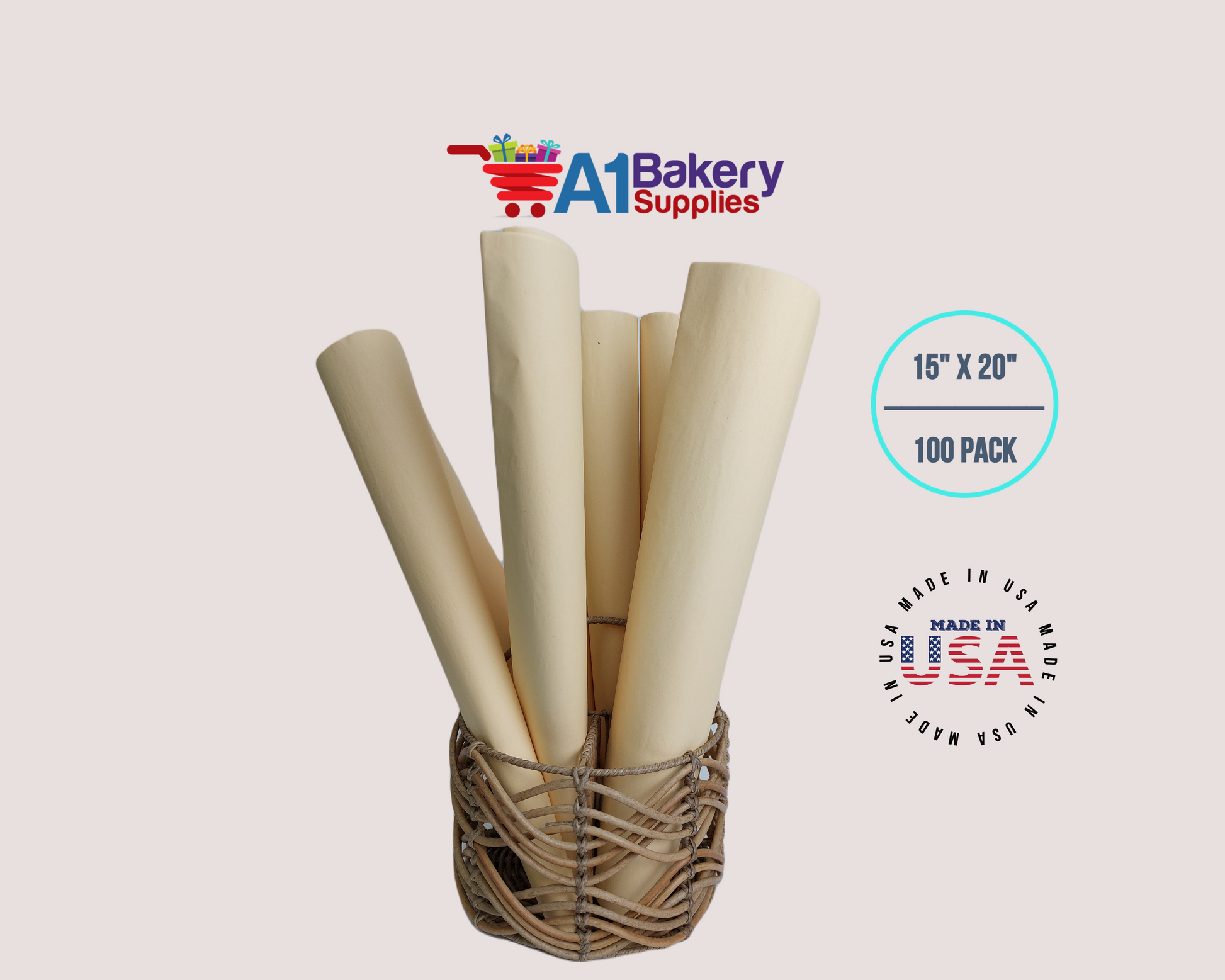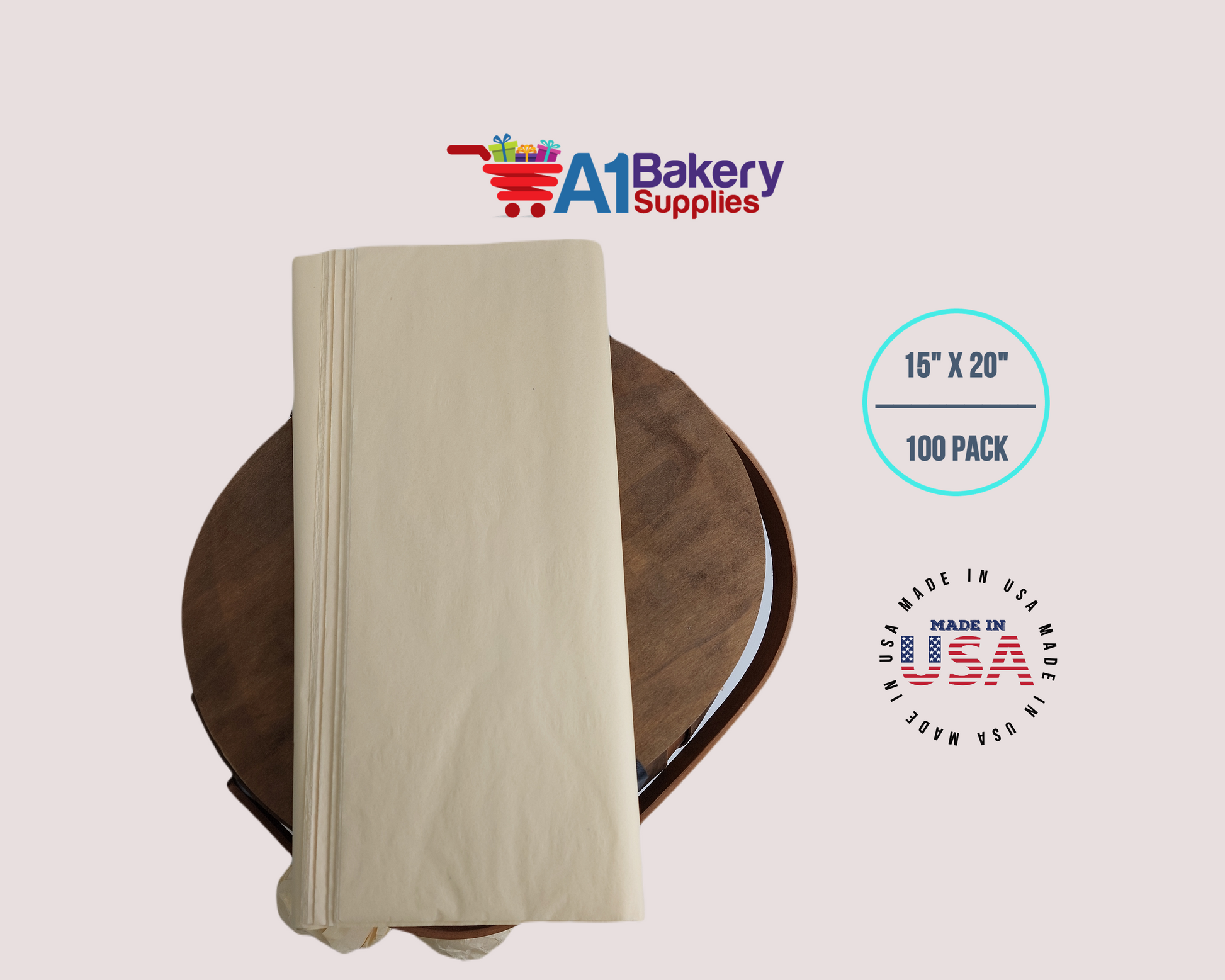 French Vanilla Tissue Paper Squares, Bulk 100 Sheets, Premium Gift Wrap and Art Supplies for Birthdays, Holidays, or Presents by A1BakerySupplies, Large 15 Inch x 20 Inch