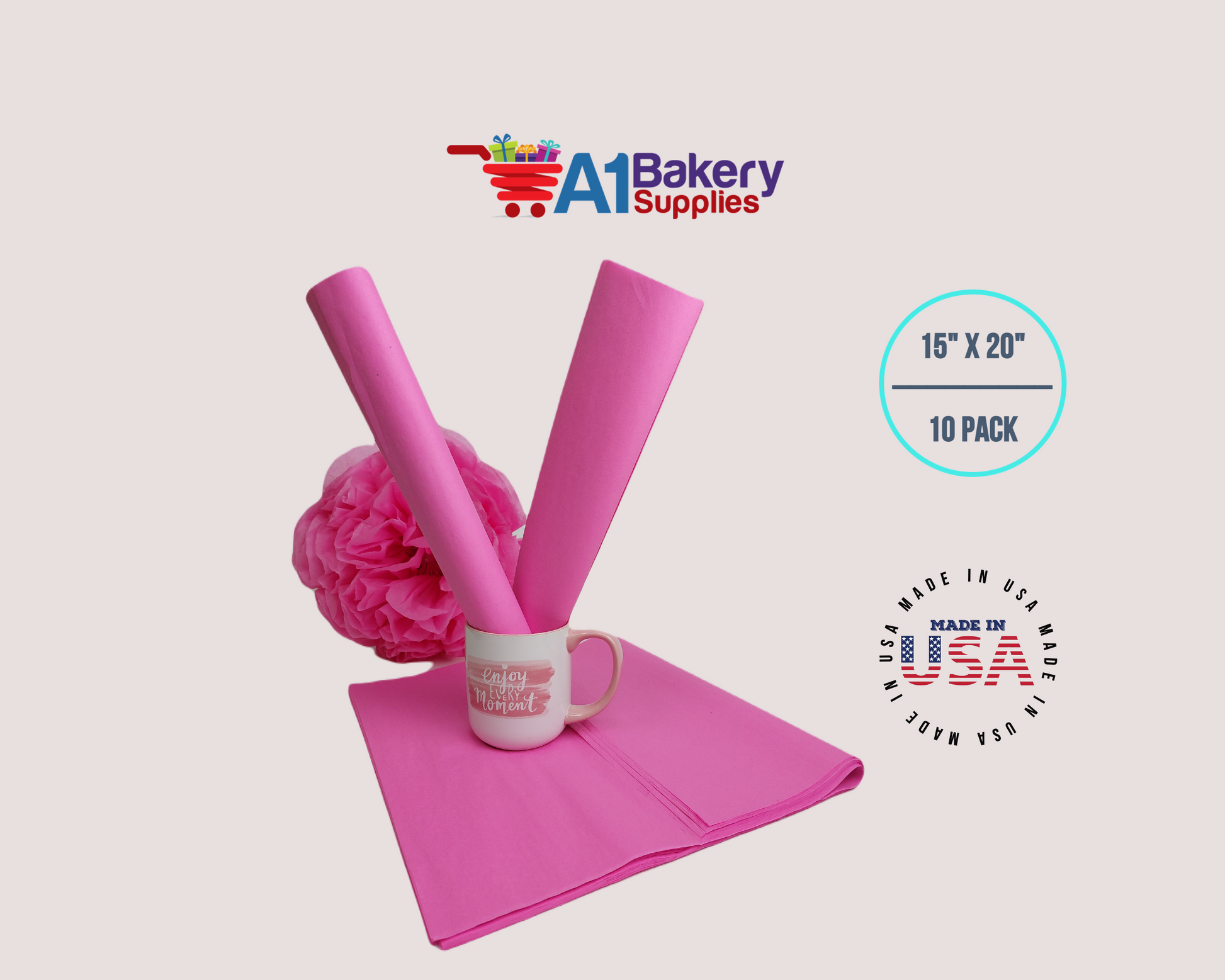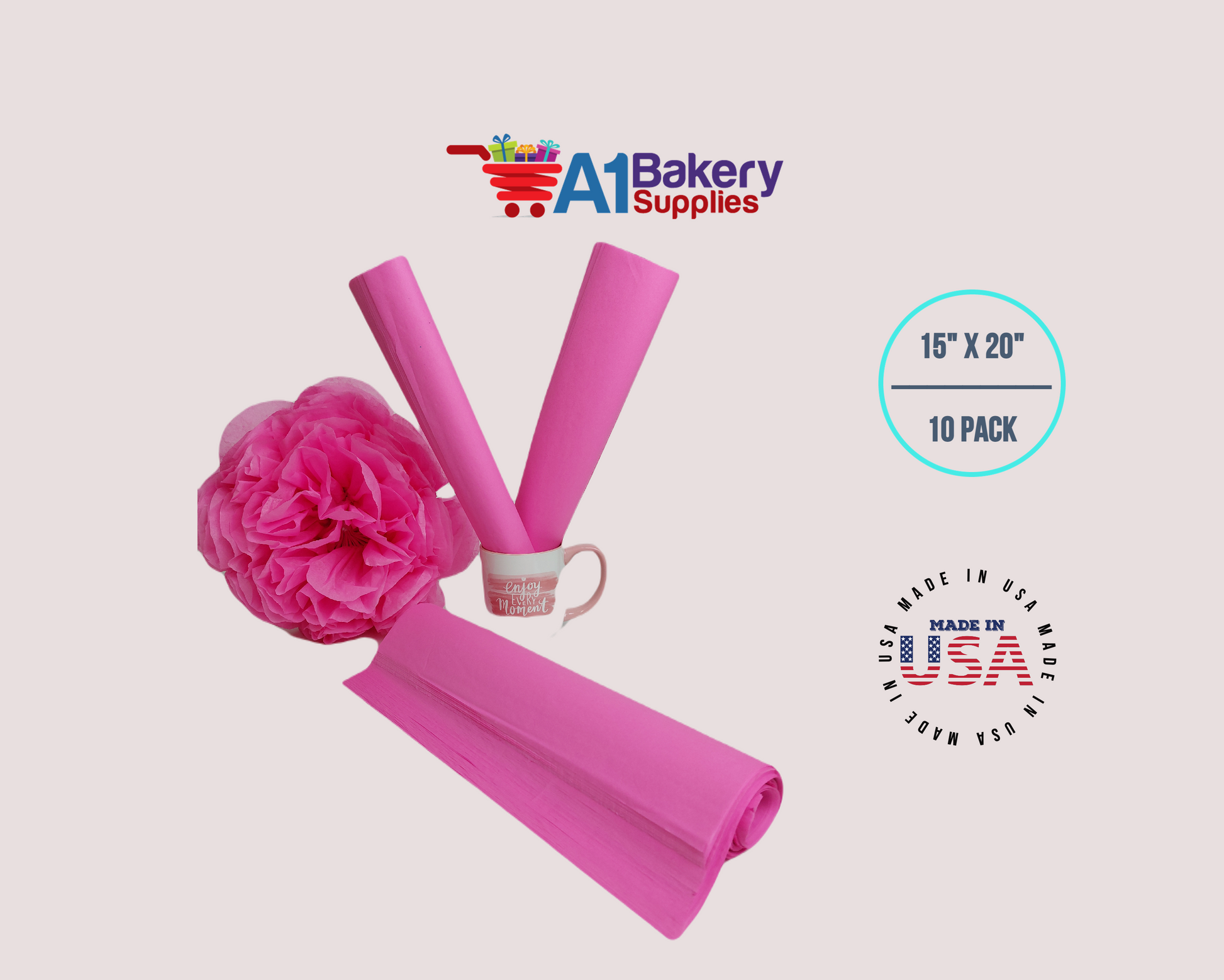 Fuchsia PinkTissue Paper Squares, Bulk 10 Sheets, Premium Gift Wrap and Art Supplies for Birthdays, Holidays, or Presents by A1BakerySupplies, Large 15 Inch x 20 Inch