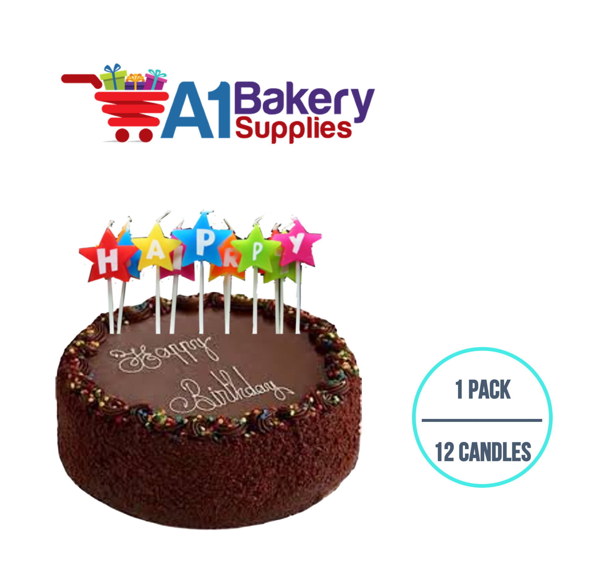 A1BakerySupplies Happy Birthday Star Letter Candles 1 pack for Birthday Cake Decorations and Anniversary