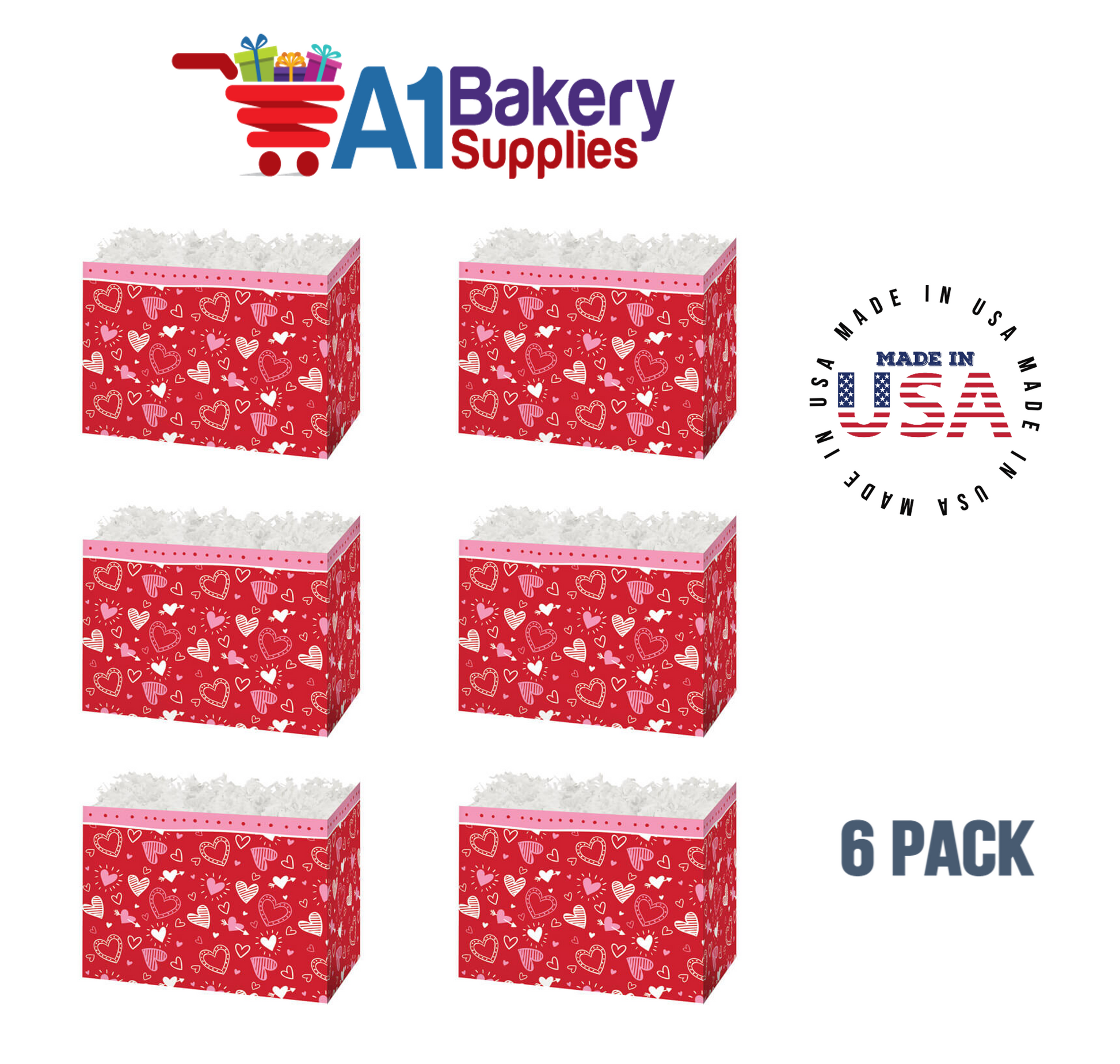 Happy Hearts Basket Box, Theme Gift Box, Large 10.25 (Length) x 6 (Width) x 7.5 (Height), 6 Pack