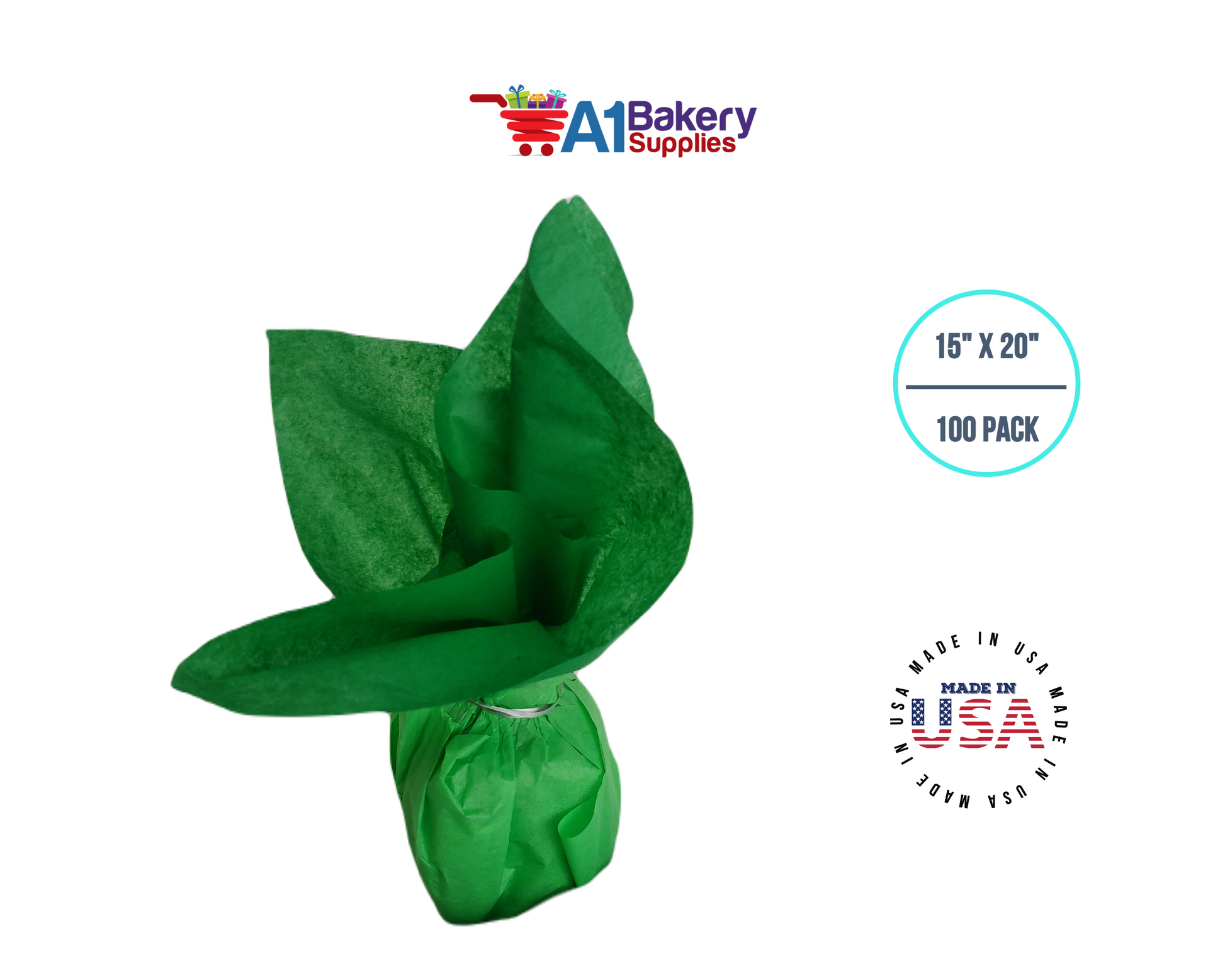 Kelly Green Tissue Paper Squares, Bulk 100 Sheets, Premium Gift Wrap and Art Supplies for Birthdays, Holidays, or Presents by A1BakerySupplies, Large 15 Inch x 20 Inch