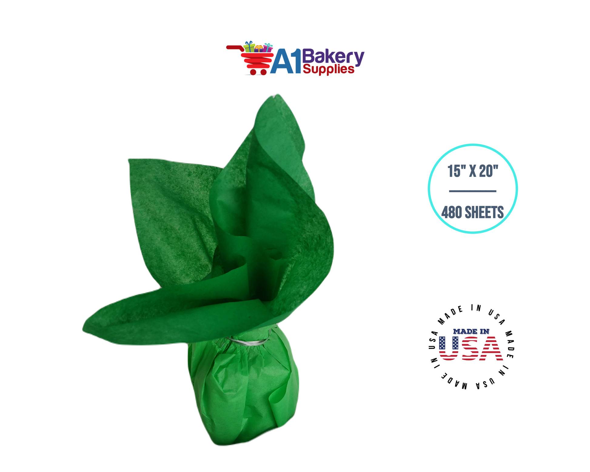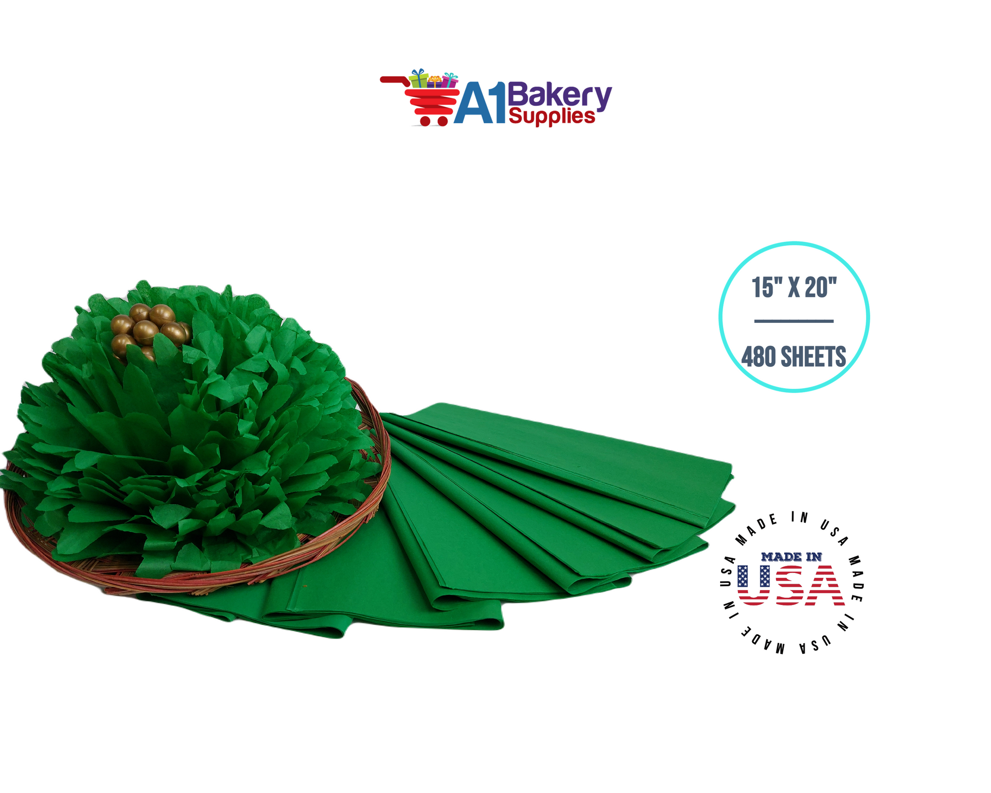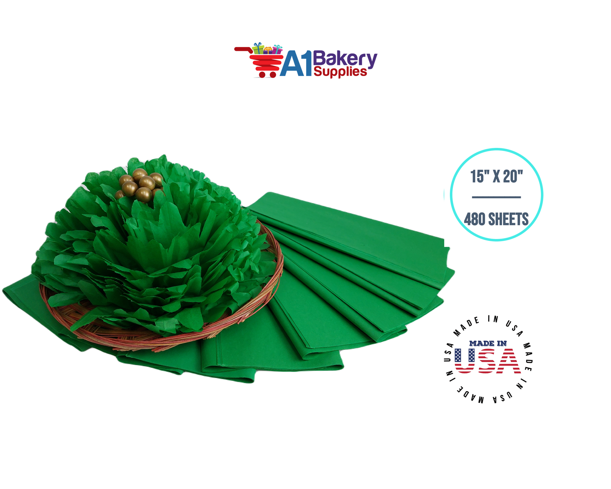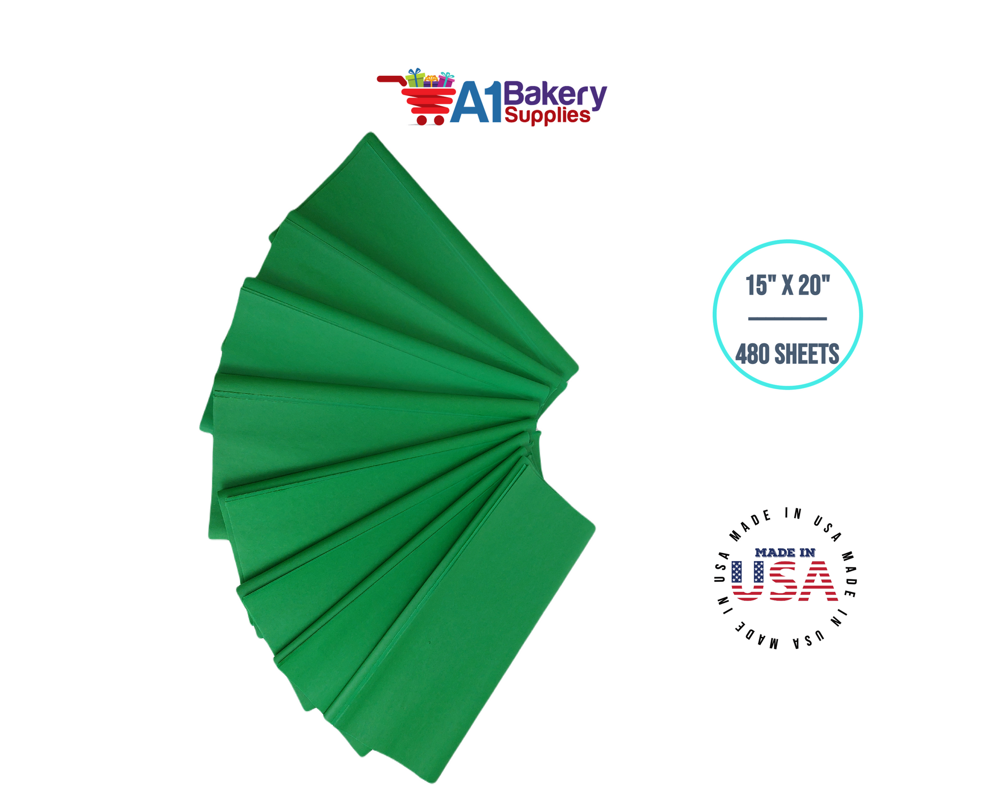 Kelly Green Tissue Paper Squares, Bulk 480 Sheets, Premium Gift Wrap and Art Supplies for Birthdays, Holidays, or Presents by A1BakerySupplies, Large 15 Inch x 20 Inch