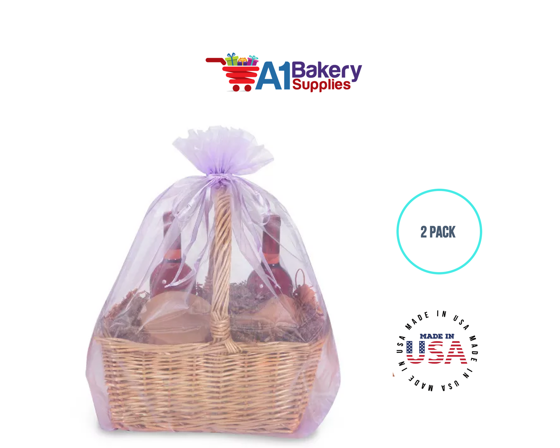 Lavender Organza Fabric Gift Bags – Pack of 2 with Size 22.5 x 25 inch by A1 Bakery Supplies