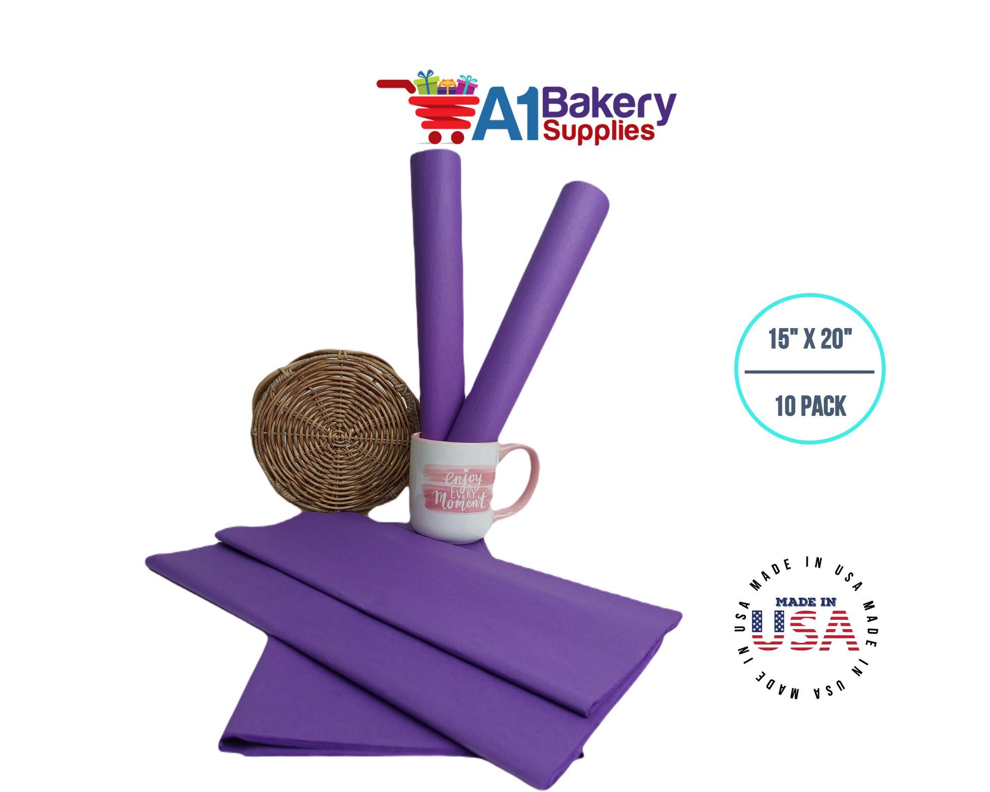 Lavender Tissue Paper Squares, Bulk 10 Sheets, Premium Gift Wrap and Art Supplies for Birthdays, Holidays, or Presents by A1BakerySupplies, Small 15 Inch x 20 Inch