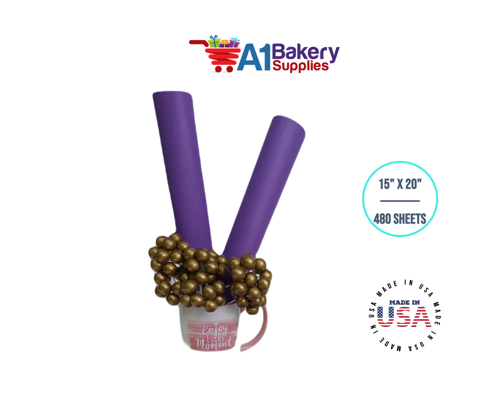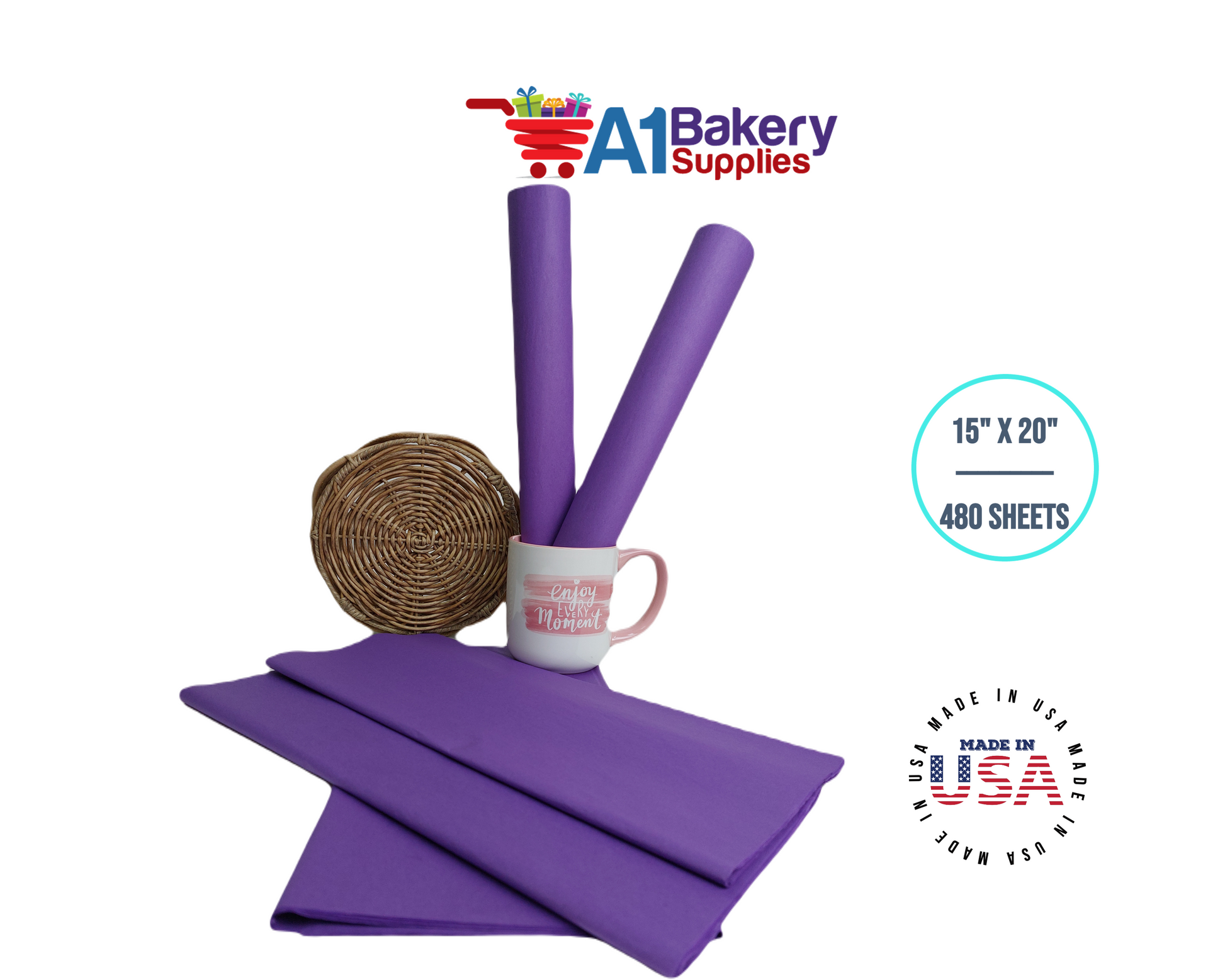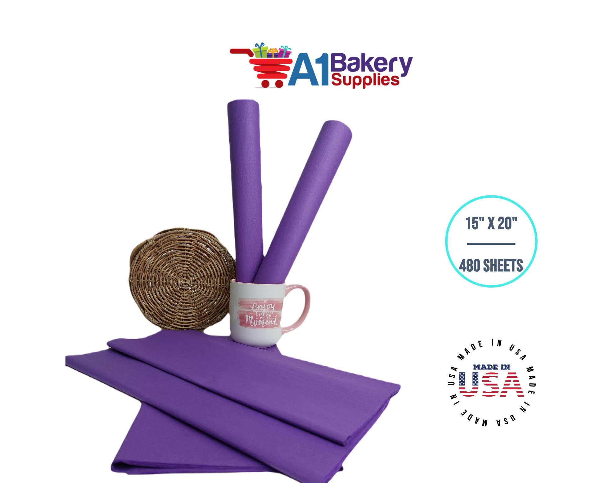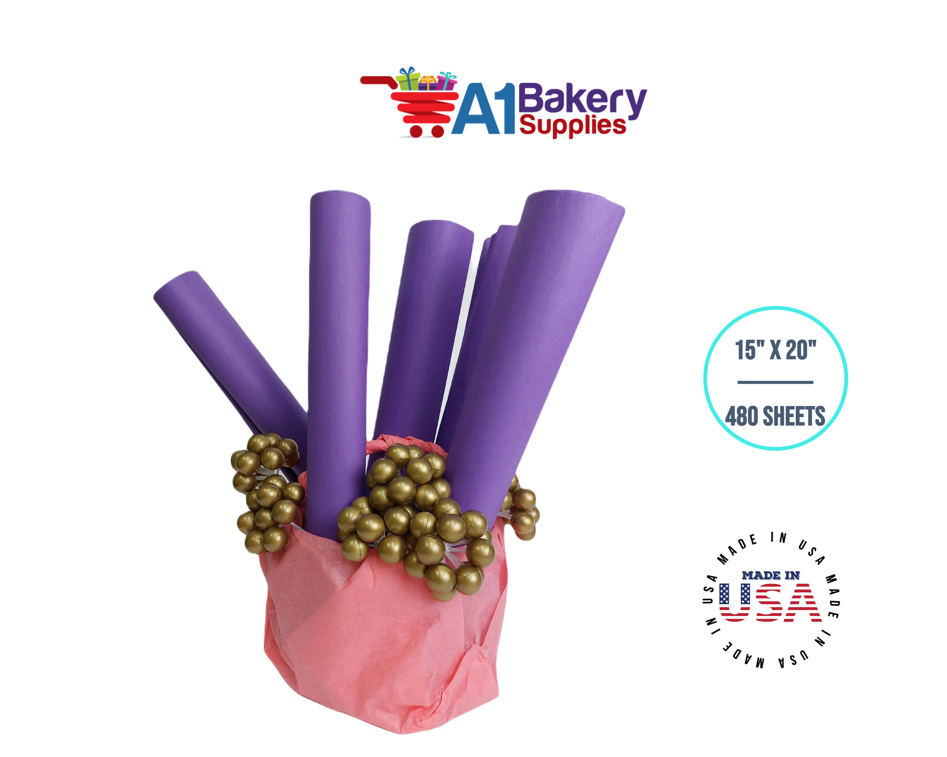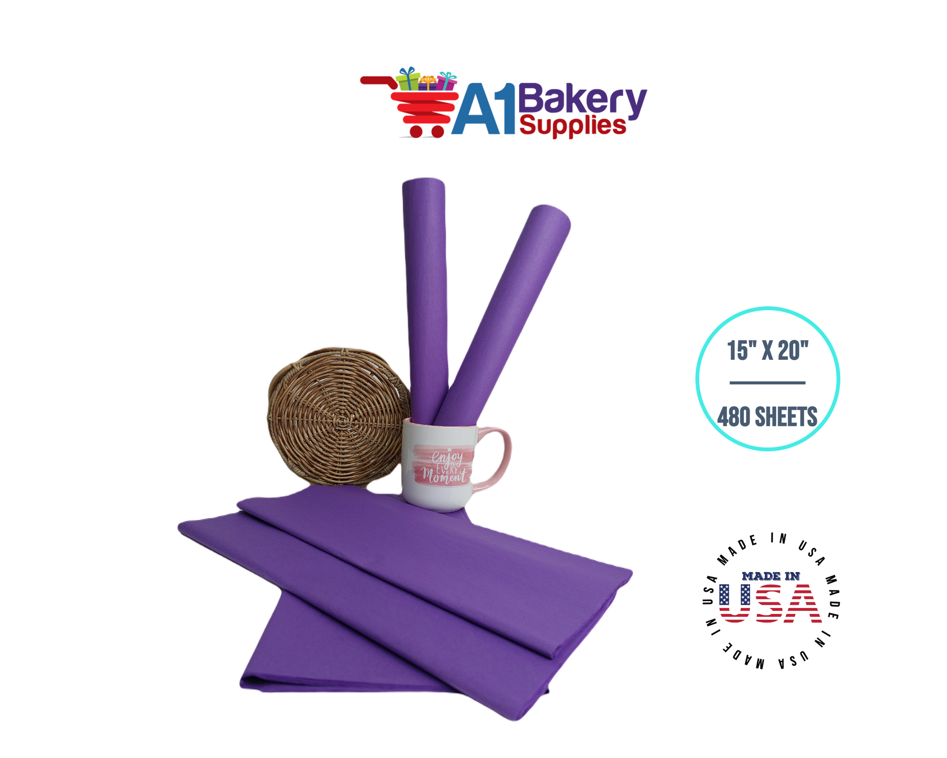 Lavender Tissue Paper Squares, Bulk 480 Sheets, Premium Gift Wrap and Art Supplies for Birthdays, Holidays, or Presents by A1BakerySupplies, Large 15 Inch x 20 Inch