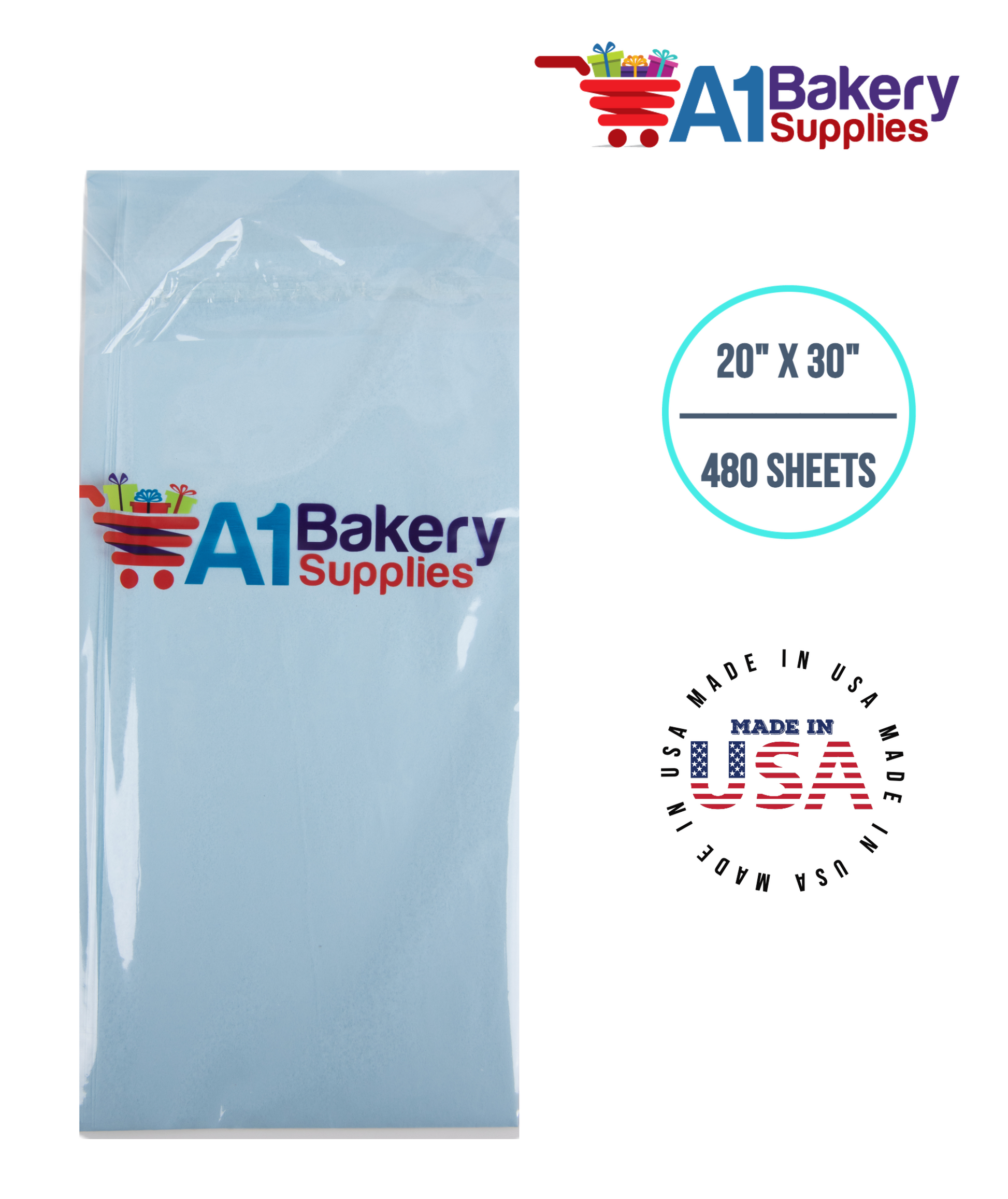 Light Blue Tissue Paper Squares, Bulk 480 Sheets, Premium Gift Wrap and Art Supplies for Birthdays, Holidays, or Presents by A1BakerySupplies, Large 20 Inch x 30 Inch
