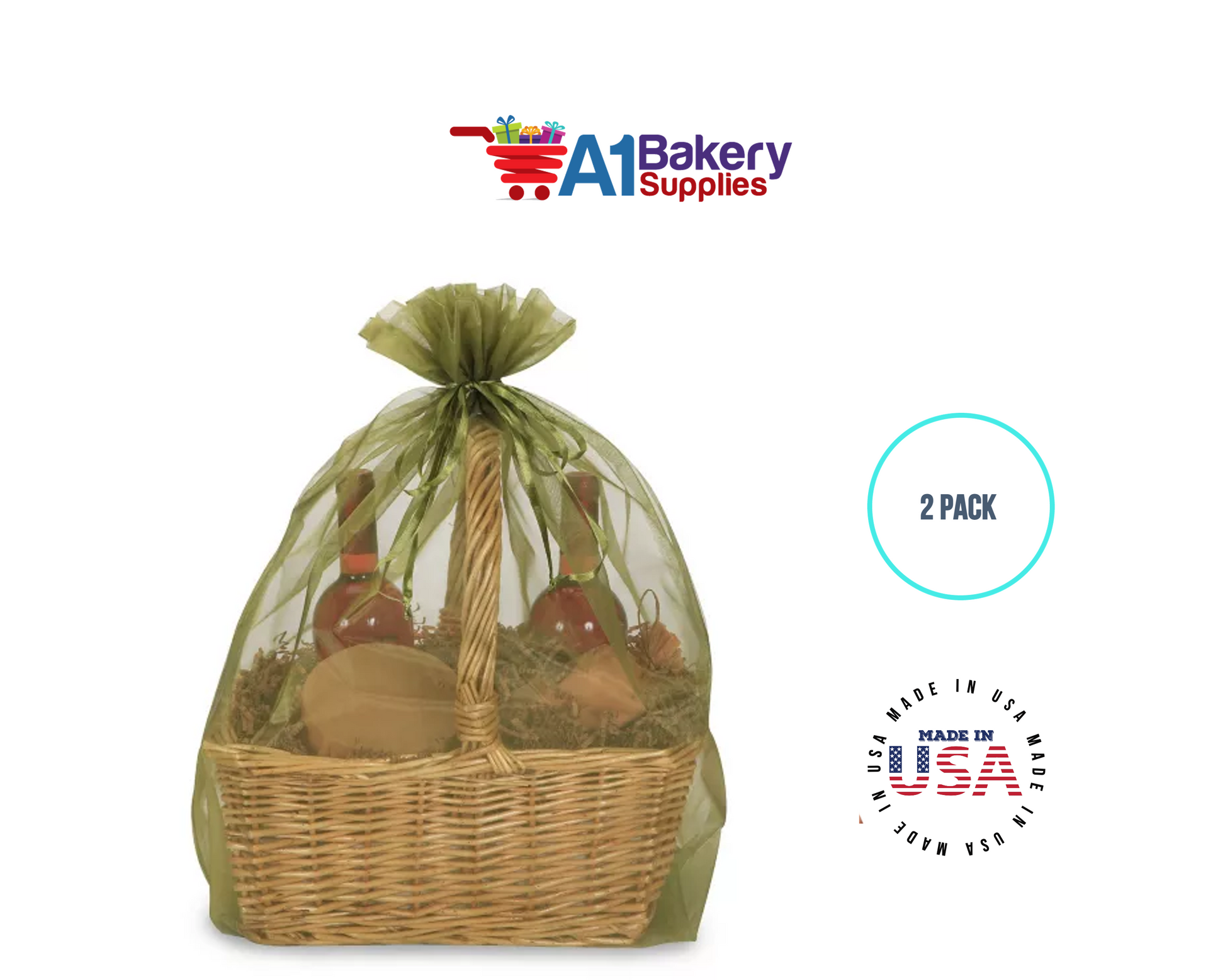 Moss Organza Fabric Gift Bags – Pack of 2 with Size 22.5 x 25 inch by A1 Bakery Supplies