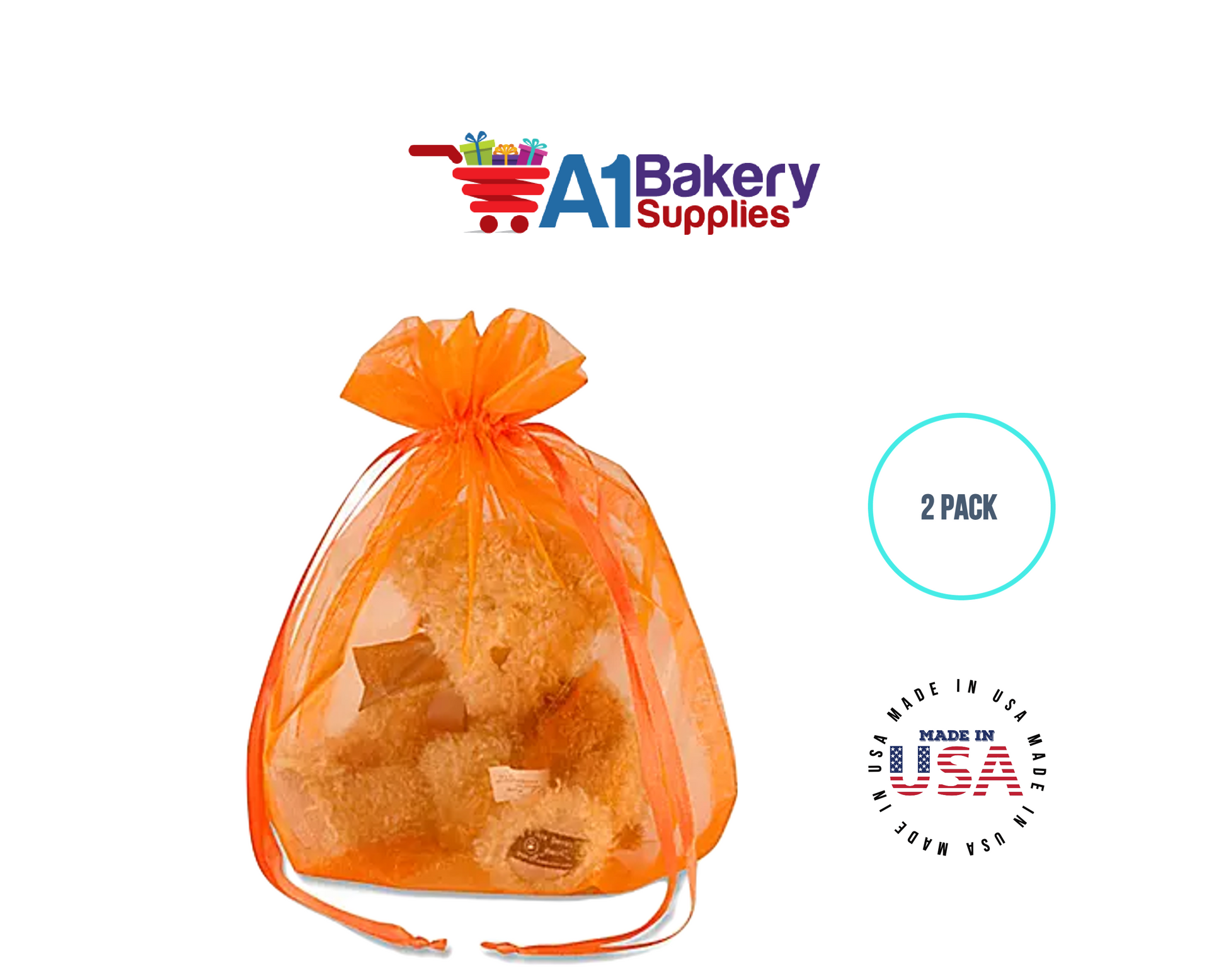 Orange Organza Fabric Gift Bags – Pack of 2 with Size 22.5 x 25 inch by A1 Bakery Supplies