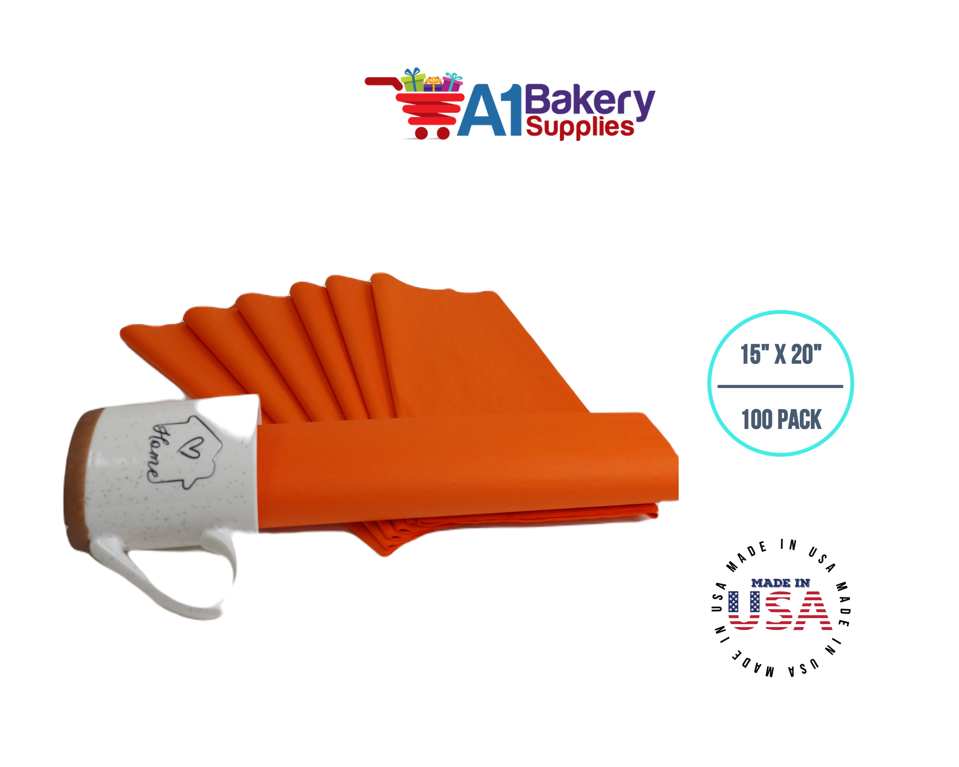 Orange Tissue Paper Squares, Bulk 100 Sheets, Premium Gift Wrap and Art Supplies for Birthdays, Holidays, or Presents Large 15 Inch x 20 Inch