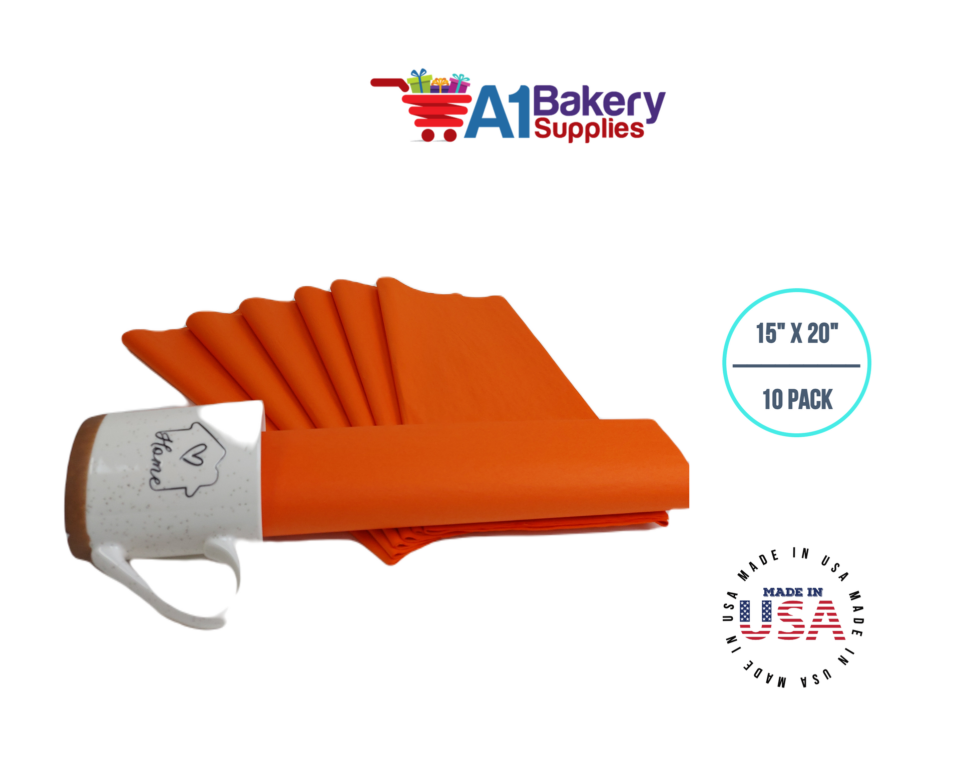 Orange Tissue Paper Squares, Bulk 10 Sheets, Premium Gift Wrap and Art Supplies for Birthdays, Holidays, or Presents by A1BakerySupplies, Large 15 Inch x 20 Inch