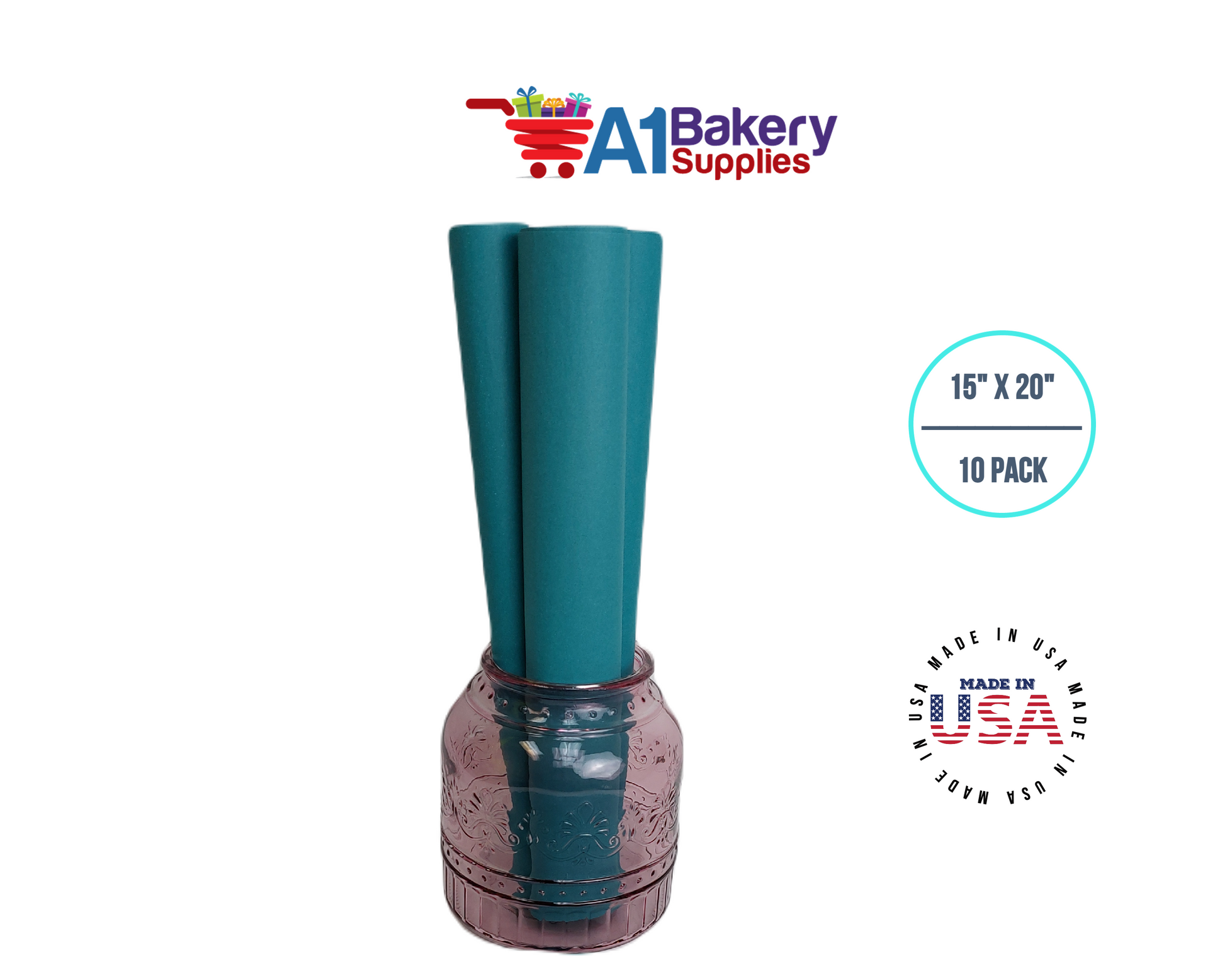 Teal Tissue Paper Squares, Bulk 10 Sheets, Premium Gift Wrap and Art Supplies for Birthdays, Holidays, or Presents by A1BakerySupplies, Small 15 Inch x 20 Inch