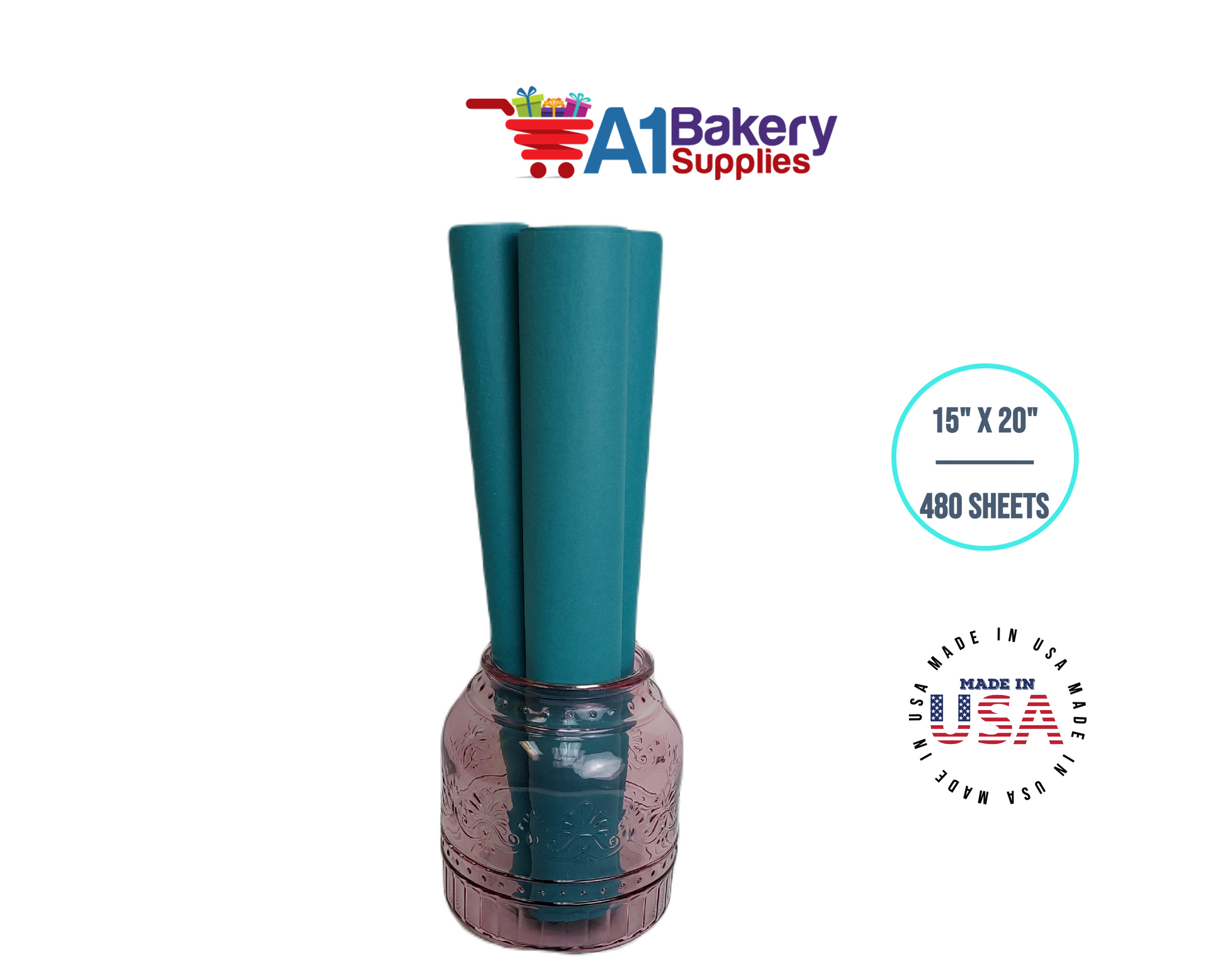 Teal Tissue Paper Squares, Bulk 480 Sheets, Premium Gift Wrap and Art Supplies for Birthdays, Holidays, or Presents by A1BakerySupplies, Large 15 Inch x 20 Inch